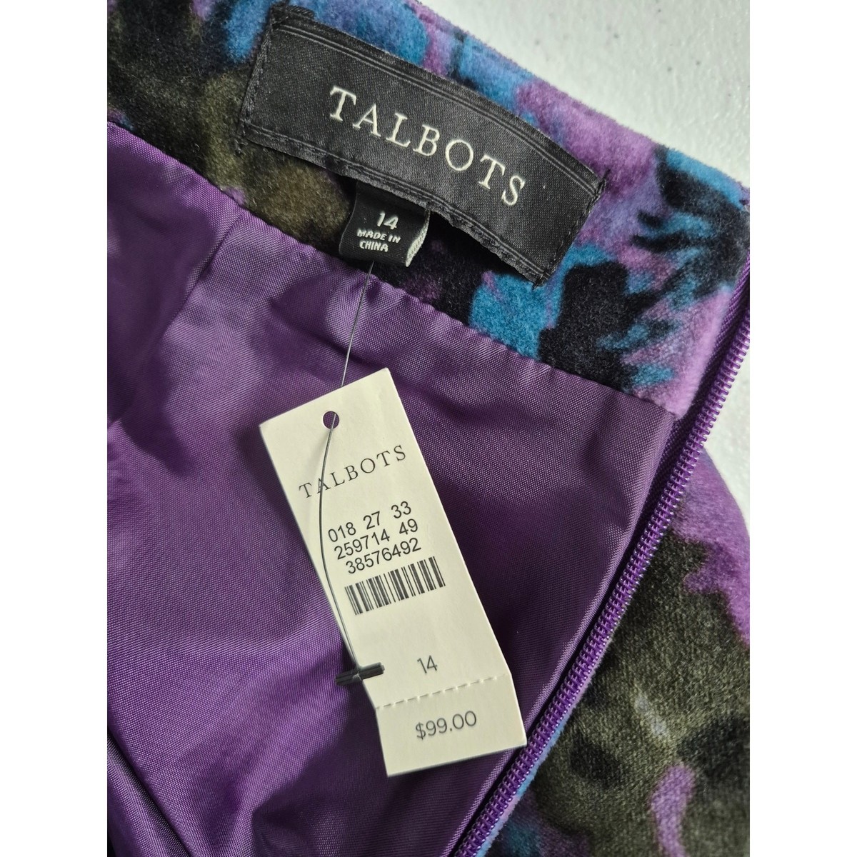 NWT Talbots 100% Cotton Velvet Floral Skirt Poly Satin Lining Purple/Blue Zipper Back Sz 14