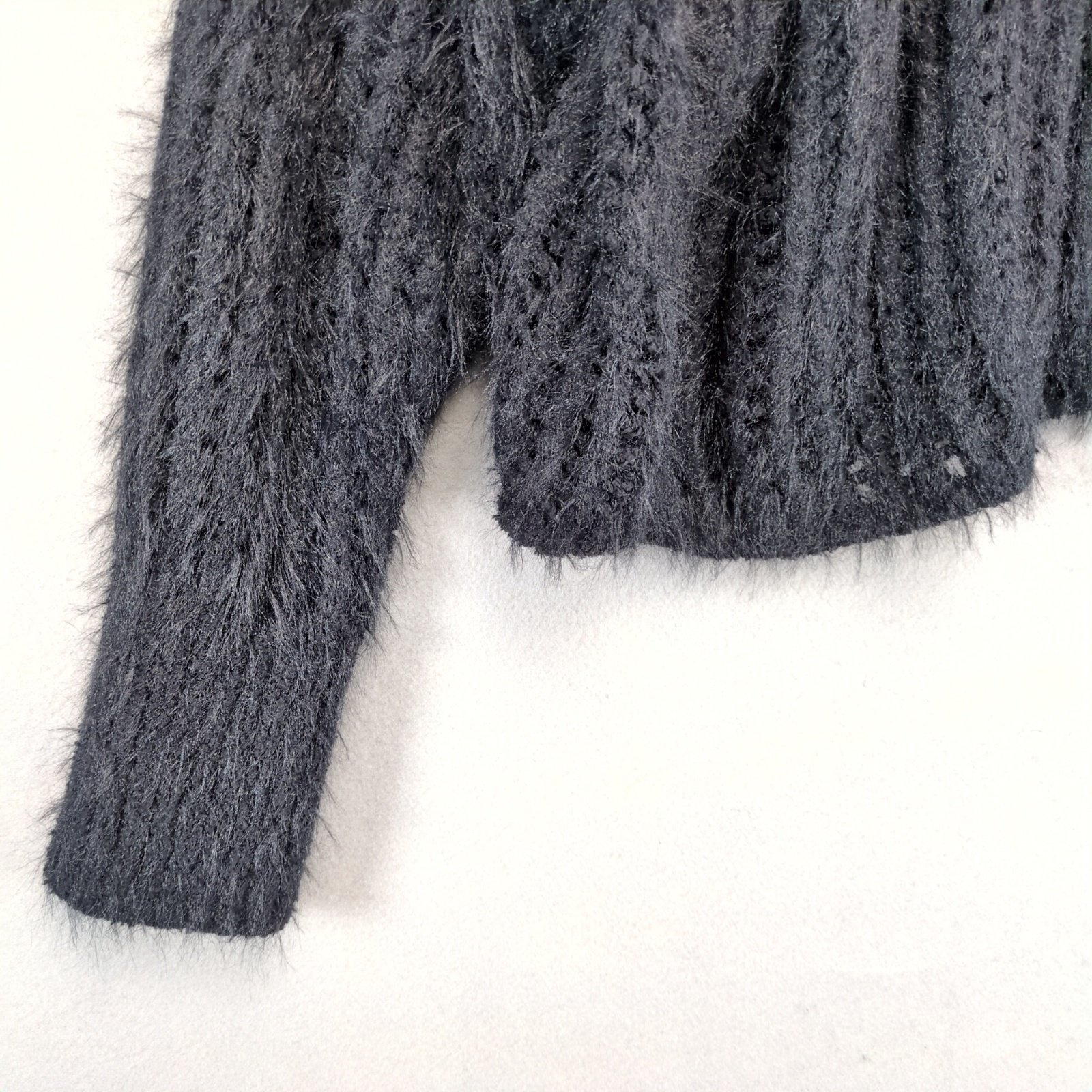 - NWT Universal Thread Black Fuzzy Open Chunky Knit Sweater Women's XL Teddy Goth