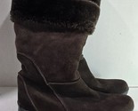 This sale is for a pair of womens boots, new with tags, sitting in the closet in excellent new condition, suede leather uppers, dark brown, no rips, no tears, no wear on soles, side zippers, from a smoke free home.