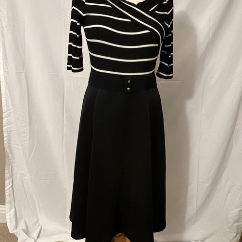 - NWT Womens Dress-DRESSBARN-black/white stretch size 4 Belt
