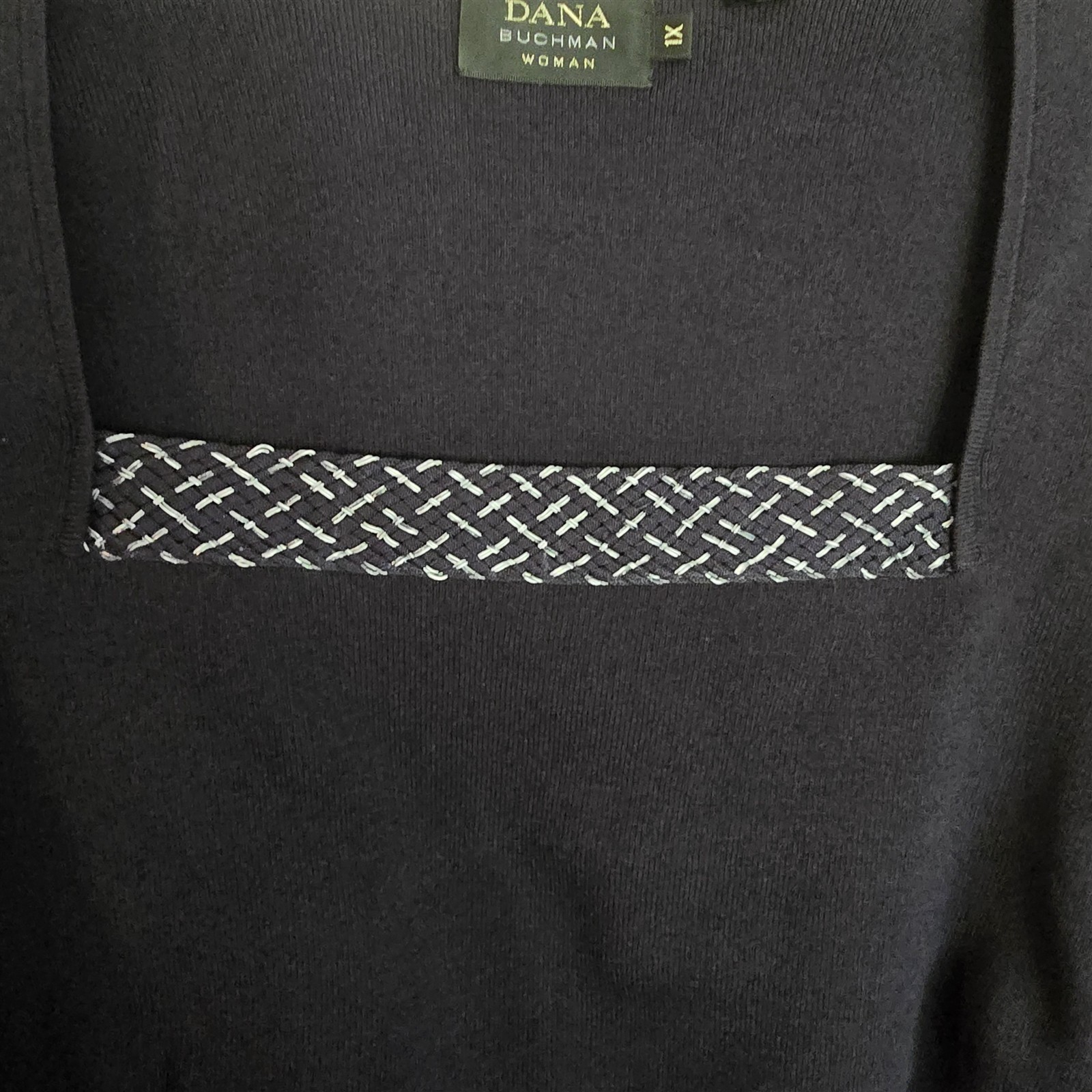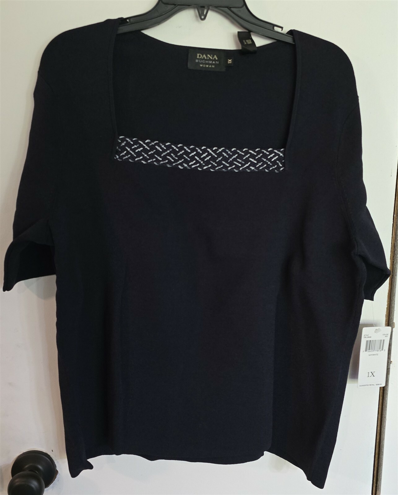 - NWT Womens Plus 1X Dana Buchman Dark Navy Blue Woven Neckline Sweater