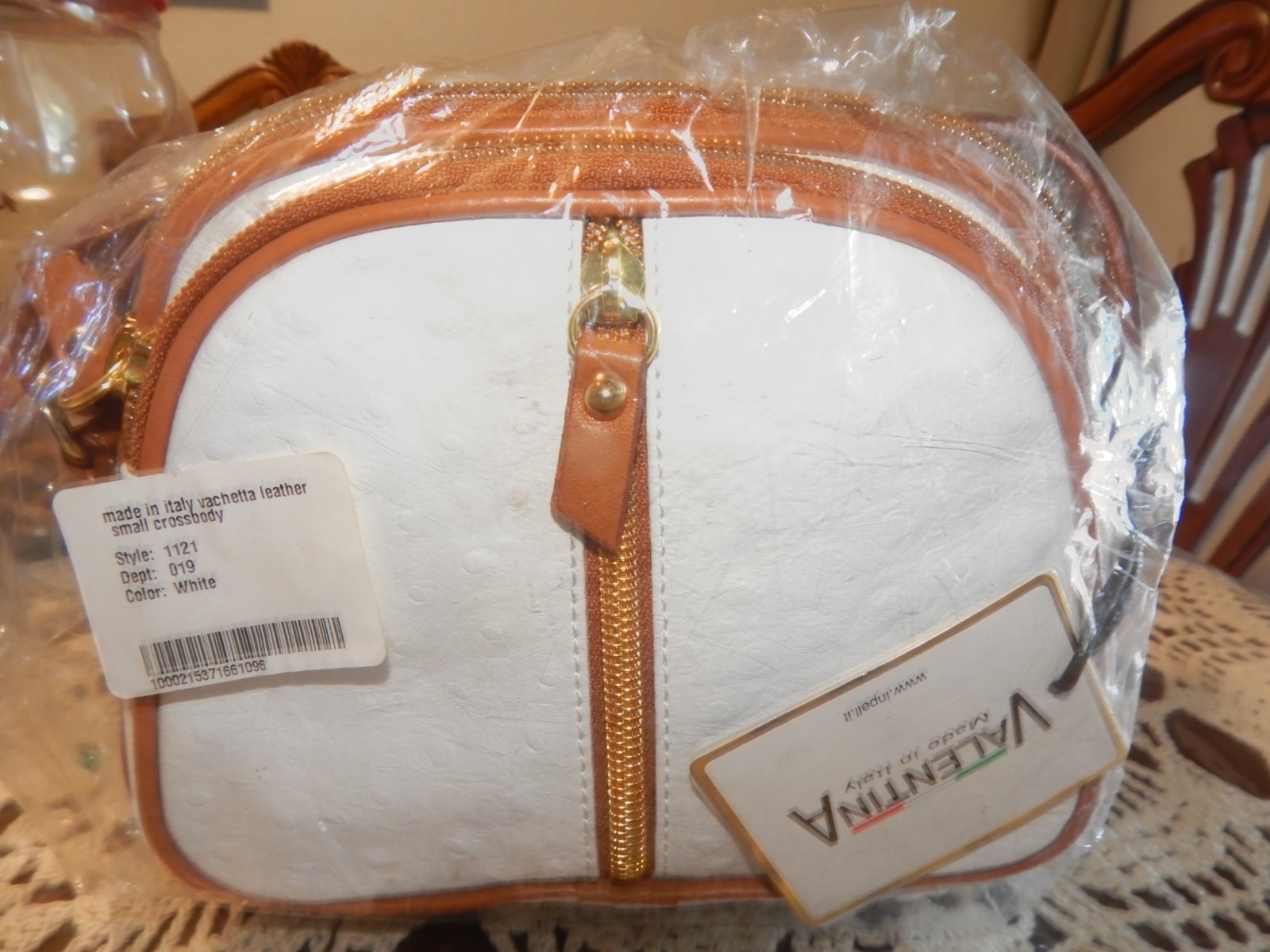- NWT tags Valentina Made In Italy White vacheta Leather Crossbody bag