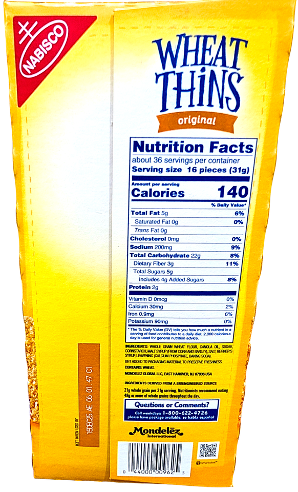 - Nabisco Original Wheat Thins 100% Whole Grain 2x20 Ounce Box EXP 12/2025