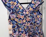 Fluttering with floral fancy, this Nanette Lepore blouse evokes a sense of breezy romance and summertime charm. The captivating blue multi print bursts with life, creating a vibrant tapestry that dances across the eye. A flattering V-neckline adds a touch of allure, while delicate ruffle sleeves lend a playful and feminine touch. The elasticized waist cinches the silhouette, offering a comfortable and figure-flattering fit. This top is perfect for a sunny brunch with friends, a casual garden party, or a romantic evening stroll.
