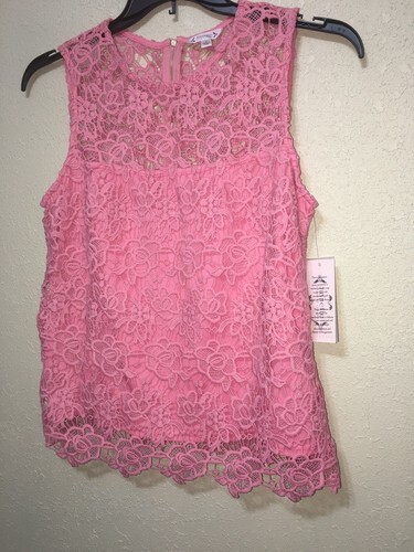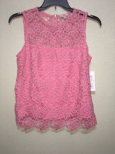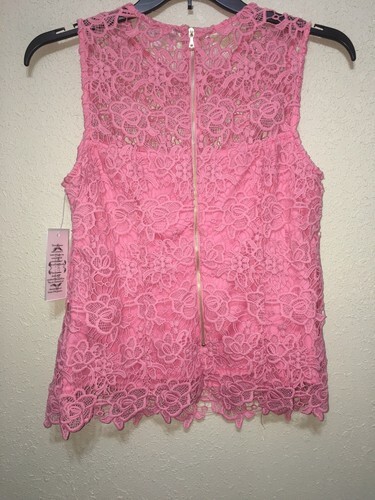 - NANETTE LEPORE ROUND Neck Lace Top ROSETTA PINK blouse sz M NEW