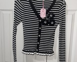 Nanette Lepore Very Black White Sweater Pearl Flowers SZ S NEW