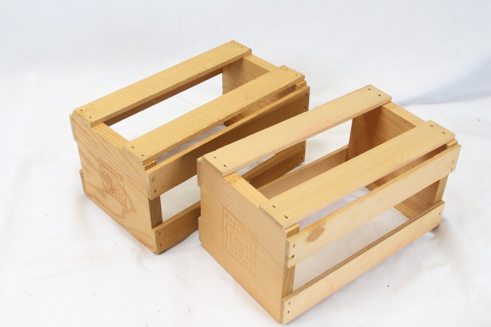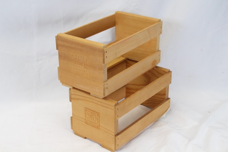 Lot of 2 Vtg NAPA VALLEY 20-CD Natural Wood Storage Box Crates Square Logo