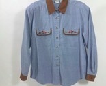 Napa Valley Petites Blue Denim Blouse Plaid & Floral Accents Women's M-Petite