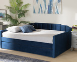 - Naresh Navy Blue Velvet Fabric Upholstered Full Size Daybed w/Trundle