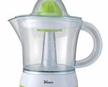 1.25L Electric Citrus Juicer, Powerful 40W Extraction for Orange Lemon Fruit Juice, Adjustable Pulp Strainer Control Settings, Maximum Juice with Reversible Cones, Detachable and Easy Clean. Voltage: 120V/60Hz. Power: 40W. Material: Plastic. Cord length: 3 ft. Capacity: Can hold up to 1.25L or 42oz providing enough freshly squeezed orange juice for the whole family to start the day. Voltage: Powerful 40-watt citrus juicer can quickly juice even larger fruits such as grapefruit. Convenient Design: Auto-reversing juicing cones provide maximum juice extraction to ensure that none of the fruit goes to waste. Adjustable: Adjustable pulp control dial allowing everyone to choose how they like their morning juice. Easy Clean: Detachable dishwasher safe parts for easy cleaning. Overall Approx. Dimensions: 9? L x 6.5? W x 8.75? H (2 lbs.). While using, do not squeeze forcefully. If the product is loaded due to excessive squeezing, the product can be easily damaged.