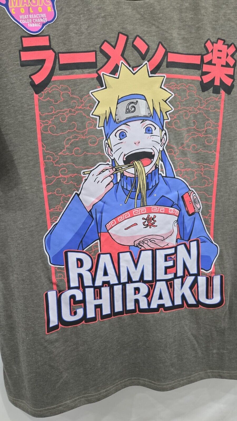 Show your love of Ramen and Naruto with this Crewneck Graphic Tee, crafted in comfortable cotton blend for all-day wear. This short-sleeve tee has a relaxed fit for a laid-back vibe to your style, and features a color-changing, heat-reactive design (cool!). Pair this graphic tee with your favorite jeans, joggers or shorts for an official Casual Friday or off-duty look.
