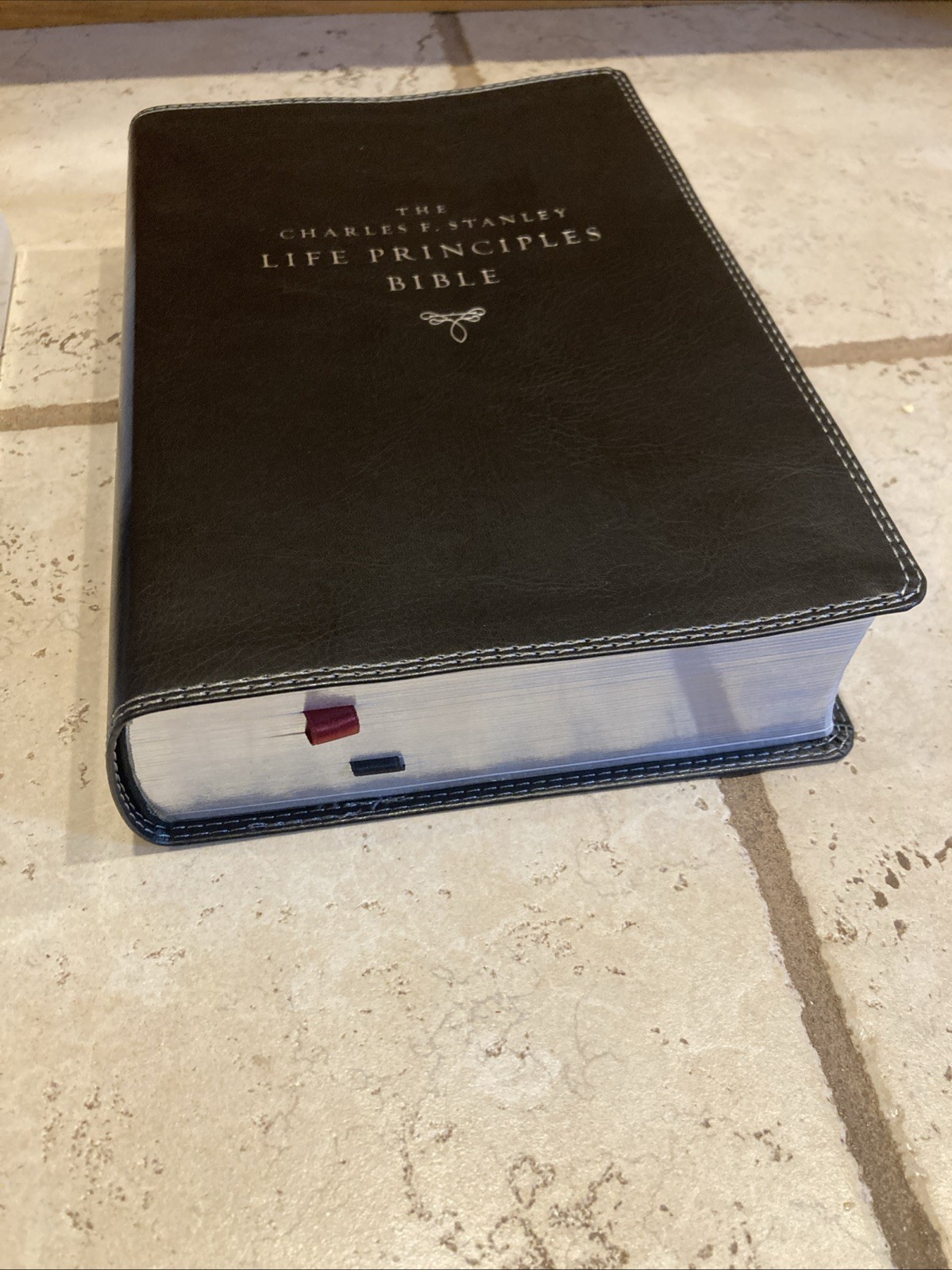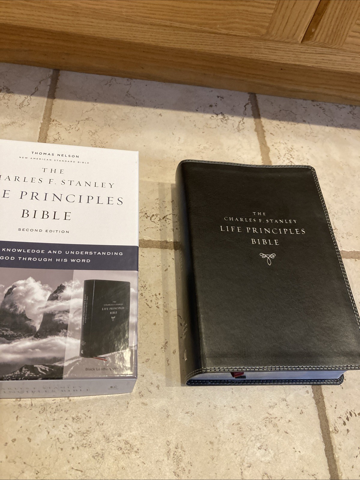 - NASB Charles F. Stanley Life Principles Bible BLACK LEATHER SOFT