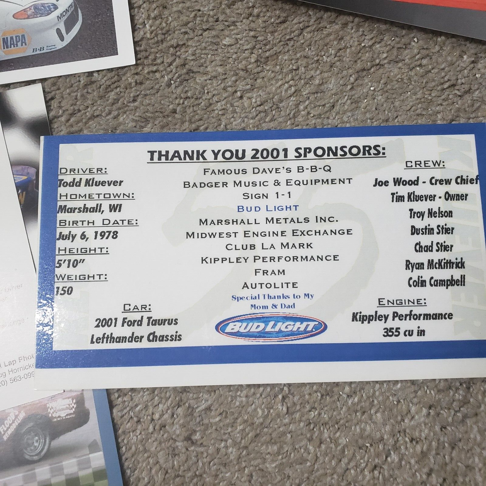 Ho ricevuto questi da Serious Collector della serie Midwest NASCAR Series (vendita di tipi di proprieta). Questi sono stati in un ambito profondo per molti anni.