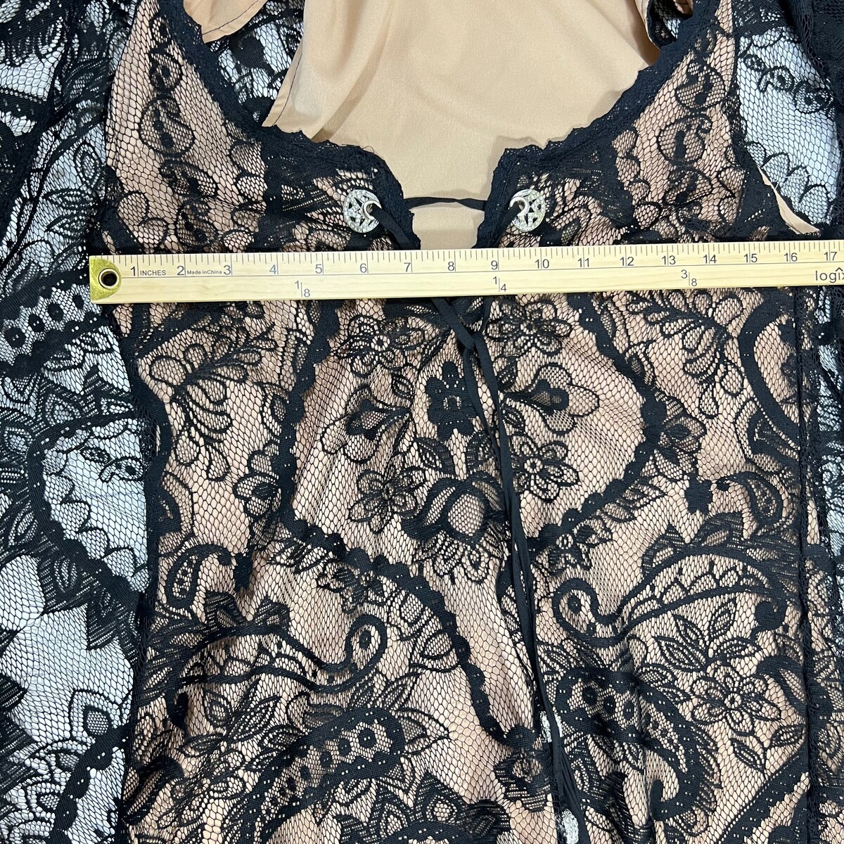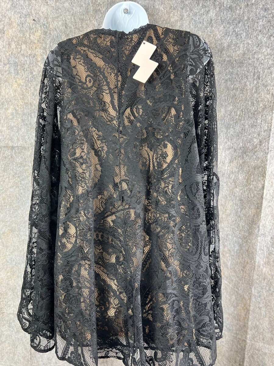 - Nasty Gal Black Lace Tunic Dress XS Sheer Bell Sleeve Lined Boho Gothic Sexy