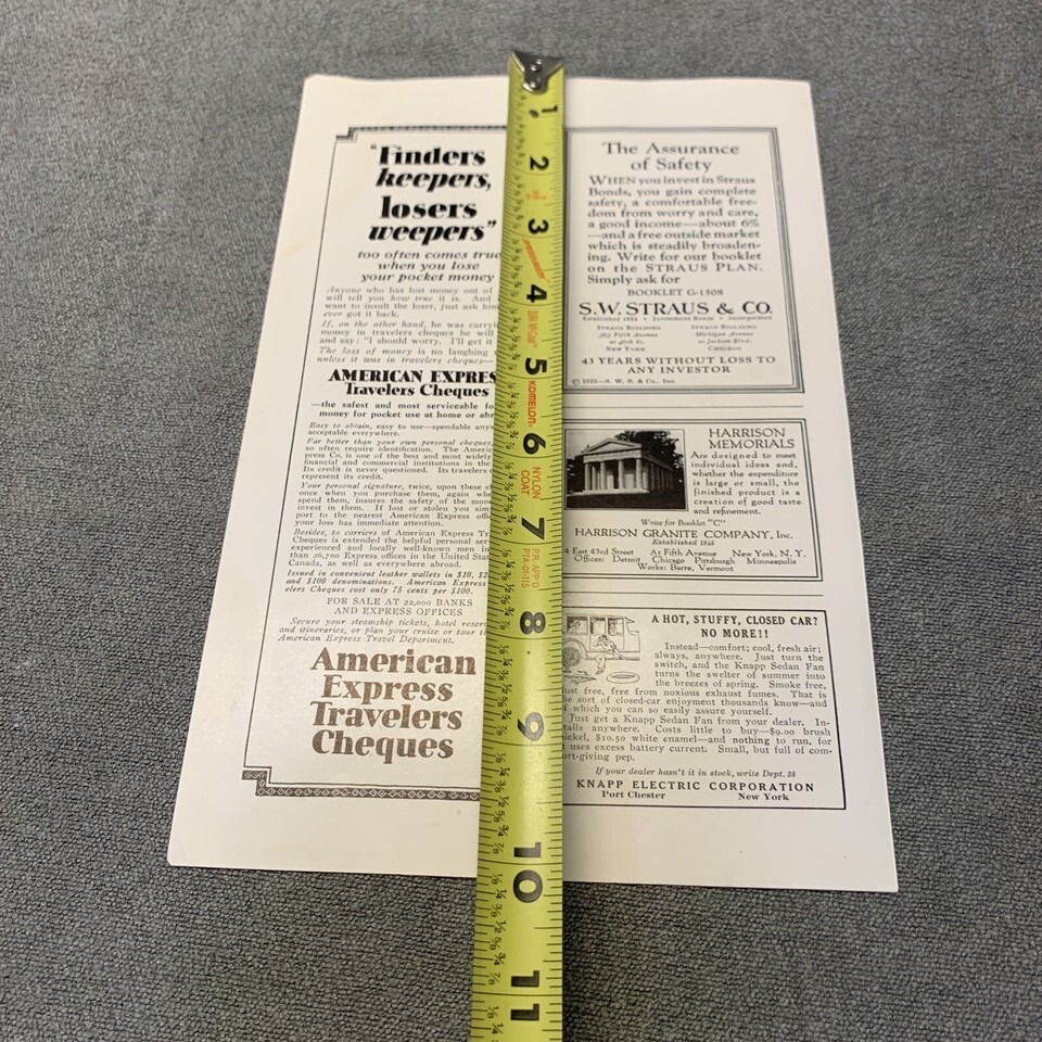 - National Geographic November 1919 American Express Cheques Vintage Print Ad KG