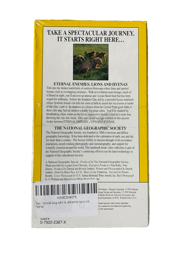 - National Geographic Video - Eternal Enemies: Lions and Hyenas (VHS, 1993) NEW