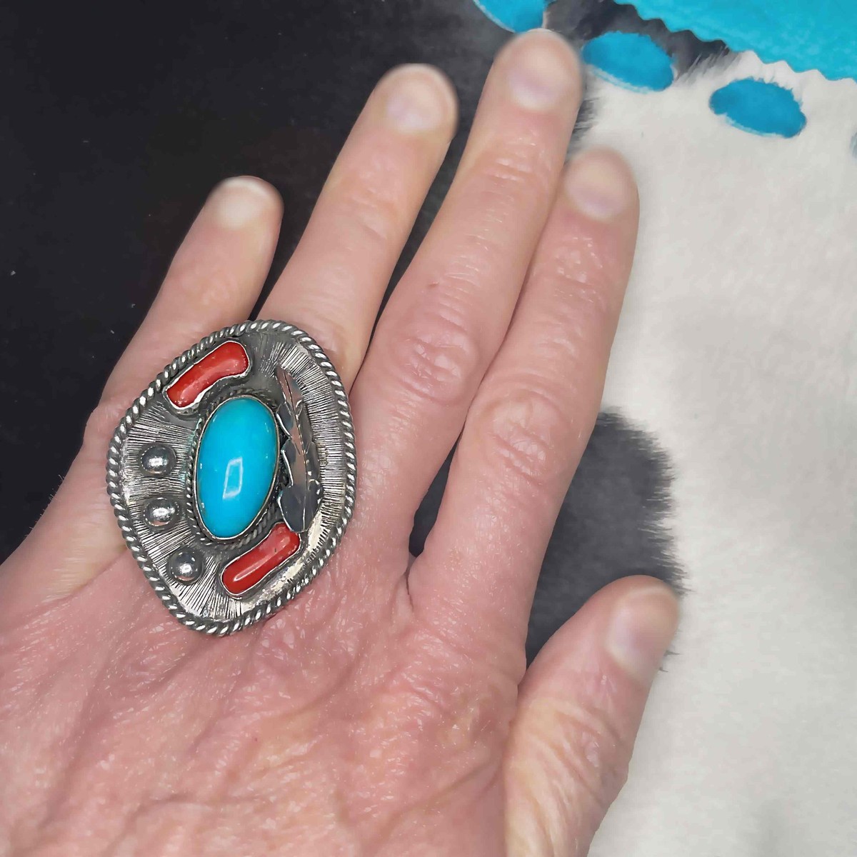 Native American Natural Untreated Turquoise Coral Ring Sterling Silver