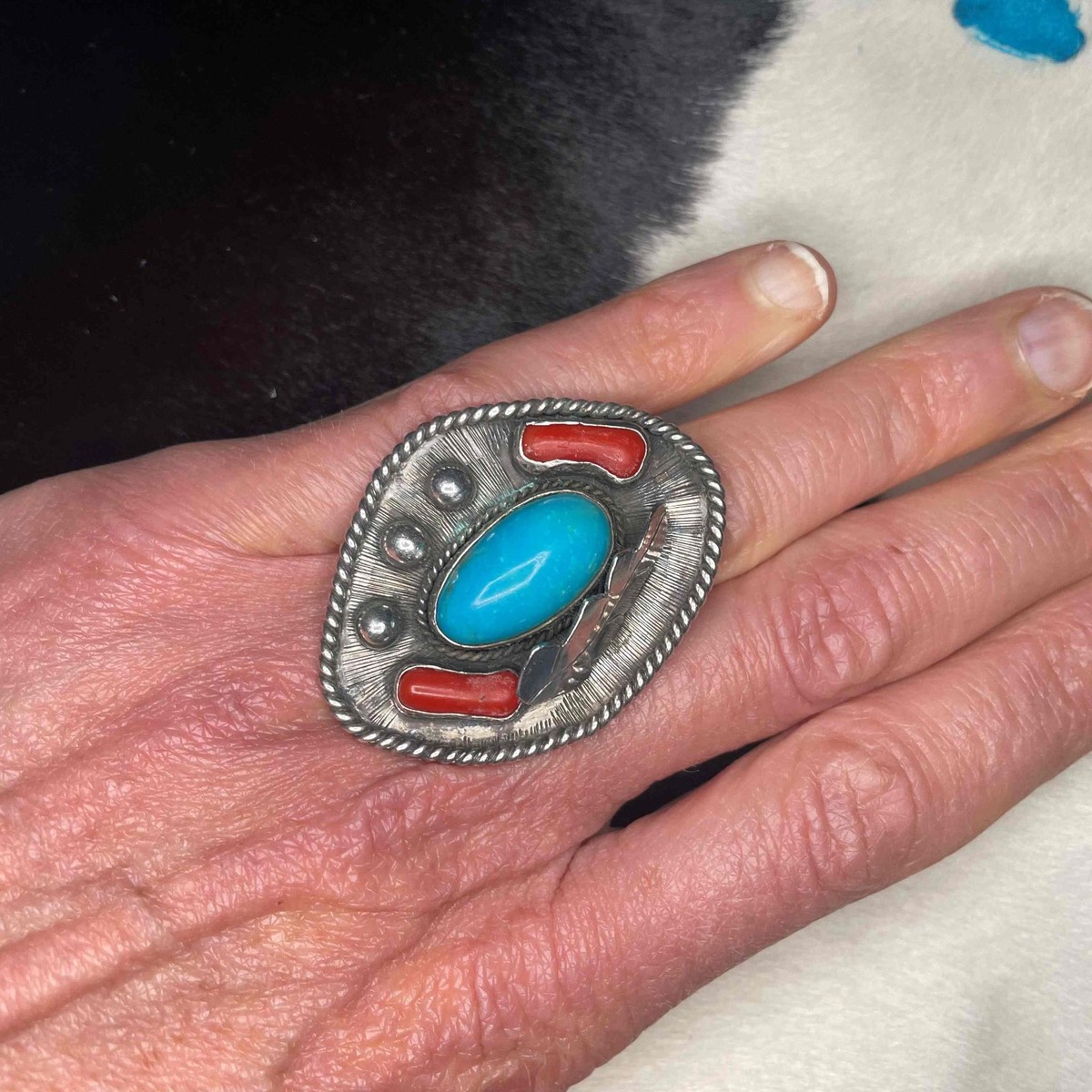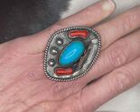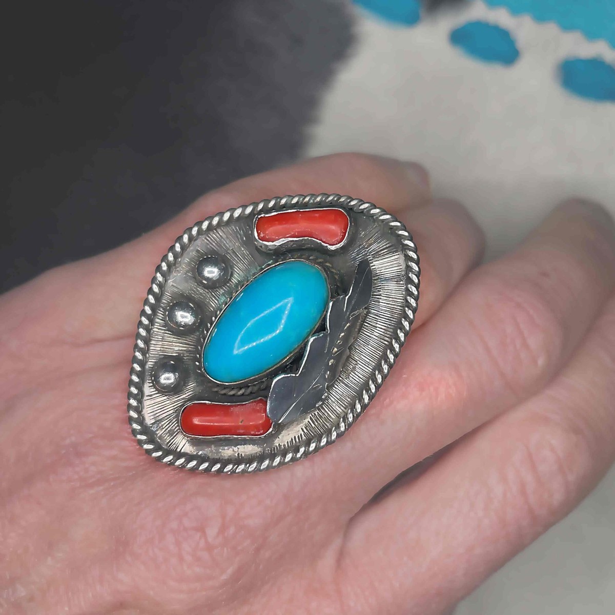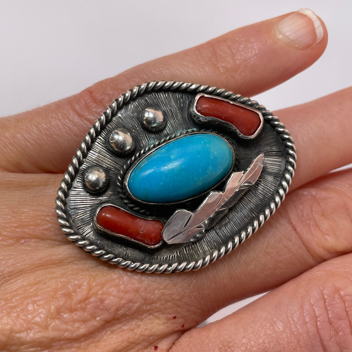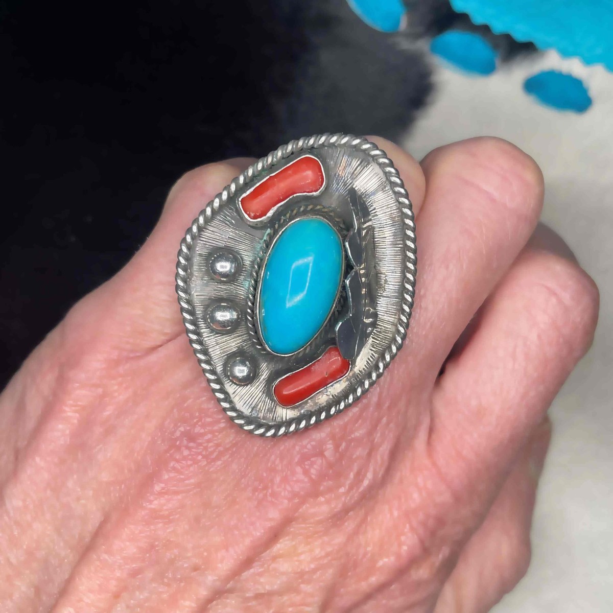 - Native American Natural Untreated Turquoise Coral Ring Sterling Silver