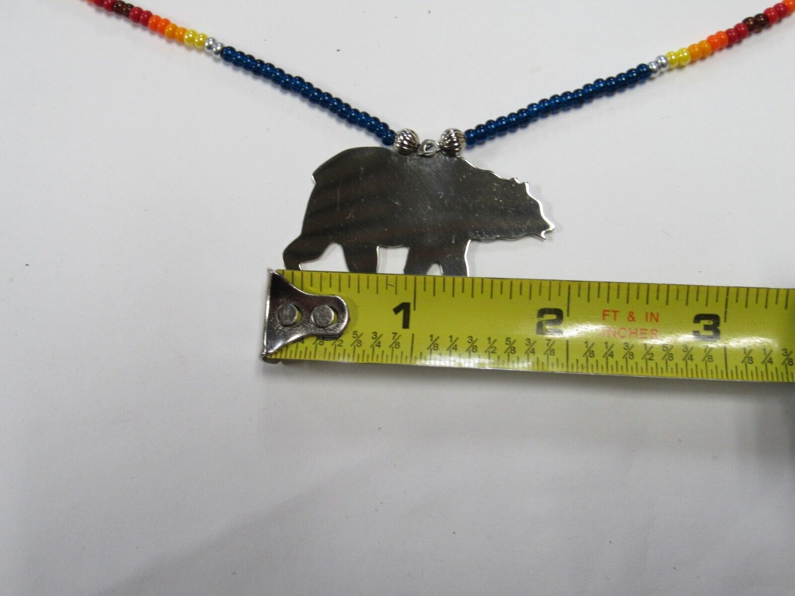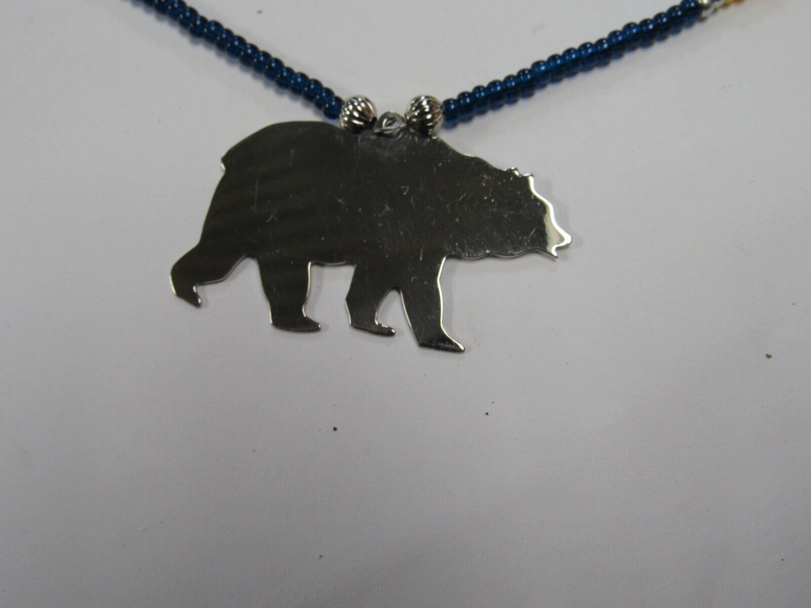 This is new in very good condition, never been worn, silver bear on a beaded necklace with matching earrings.