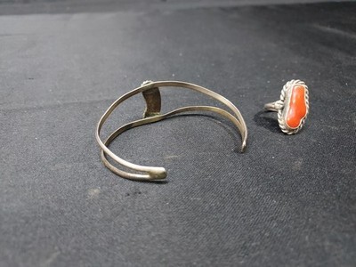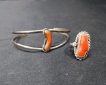 NATIVE AMERICAN Southwestern STERLING SILVER CORAL RING 6.25 BRACELET SET . Condition is Pre-owned. Shipped with USPS Ground Advantage.