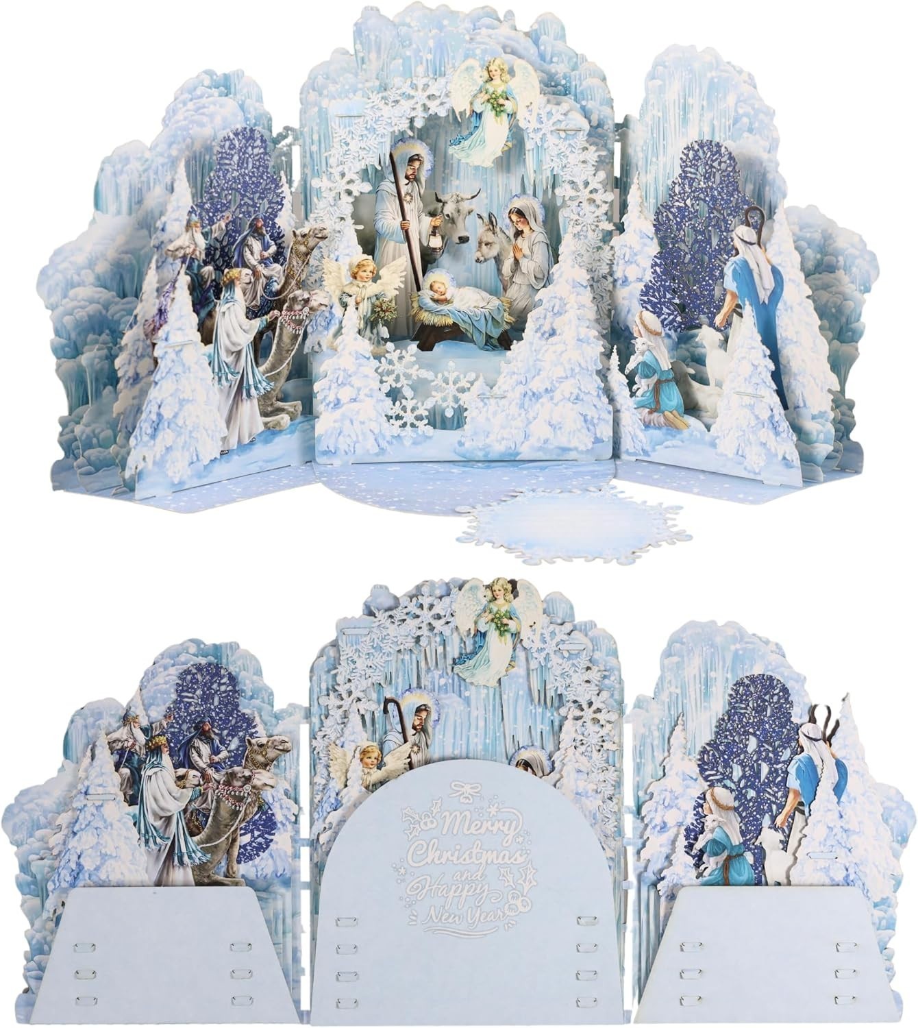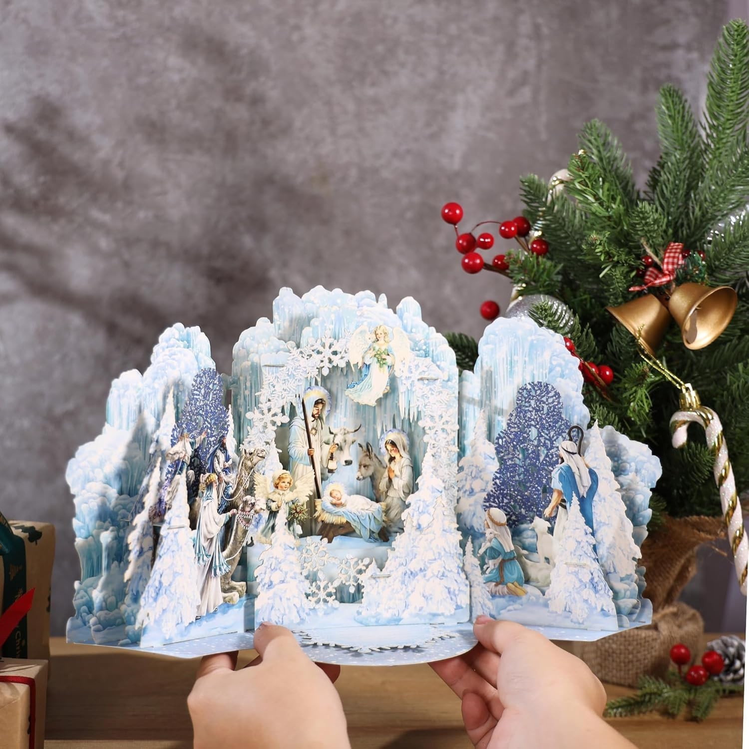 Send a heartfelt and memorable message with this one-of-a-kind pop-up card that celebrates the birth of Christ in a beautiful and timeless way.