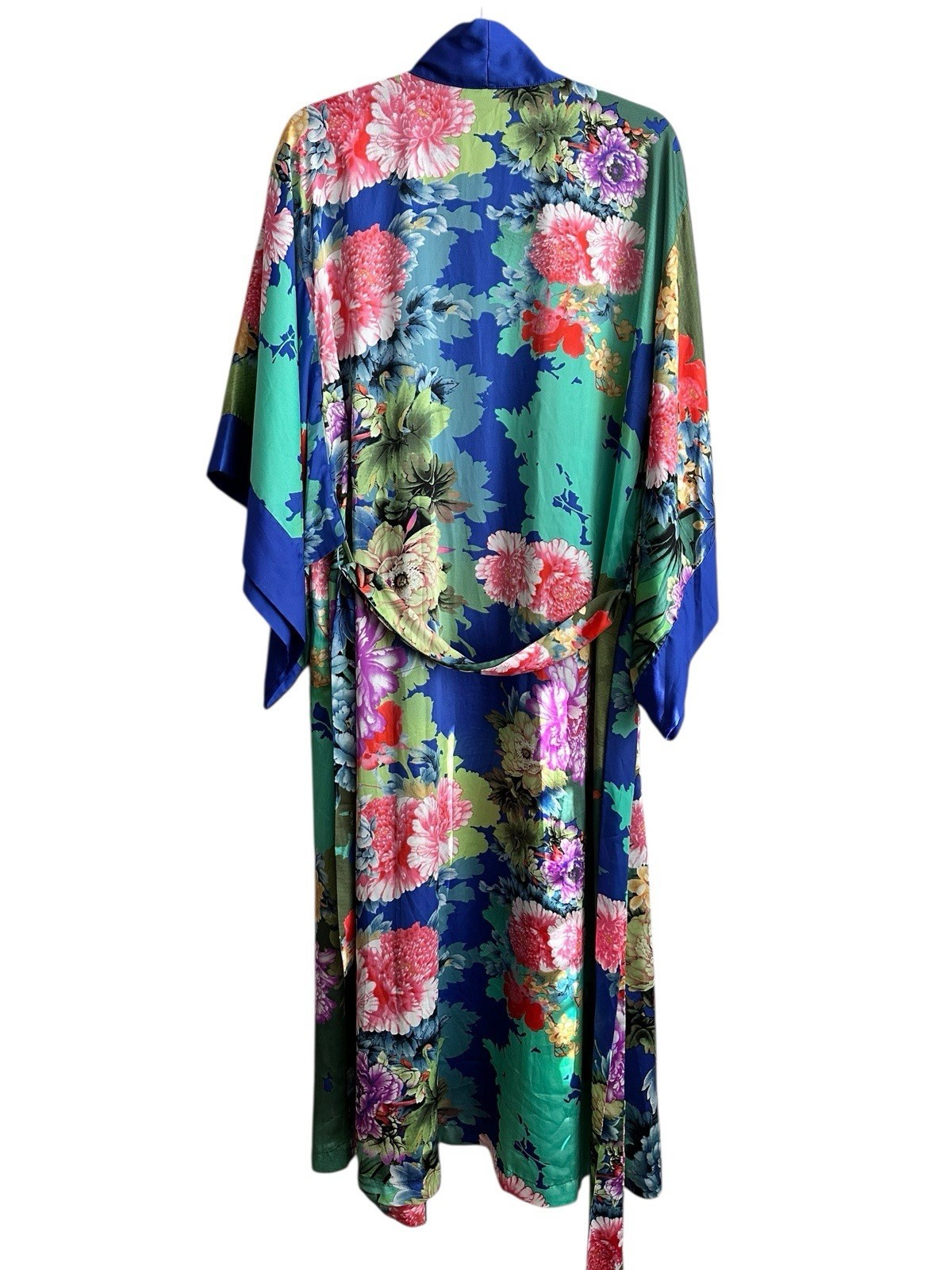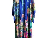 - Natori Robe Kaftan Kimono Blue Floral M With Pockets And Tie Waist