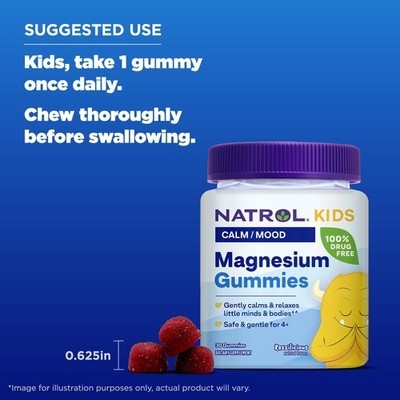 Expiration Date of 08/2026 ? KIDS MAGNESIUM GUMMIES: Natrol Kids Magnesium Citrate Gummies gently calm and relax little minds and bodies for those low in Magnesium and are safe for kids ages four and up(1) ? KIDS SUPPLEMENTS: These kids supplements are made without artificial flavors, sweeteners, or synthetic dyes; these magnesium gummies are also non-GMO, vegetarian and gelatin-free ? SUPPORTS MUSCLE RELAXATION: Magnesium is an essential mineral that supports healthy muscle relaxation and function(1) ? 100% DRUG FREE SUPPLEMENT: A tasty and convenient source of Magnesium for kids, this supplement comes with a 30 day supply of great tasting gummies and is 100% drug free and free of common food allergens ? DRUG FREE SLEEP AID BRAND IN AMERICA(2): As the drug free sleep aid brand, we not only have formulas to help you fall asleep faster, we also offer fast-acting and effective formulas that can help calm your mind and body and maintain good health