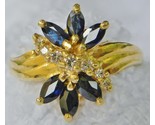 - Natural .75ctw Sapphire Diamond Cluster Cocktail Ring 14kt Yello Gold 3.5gm