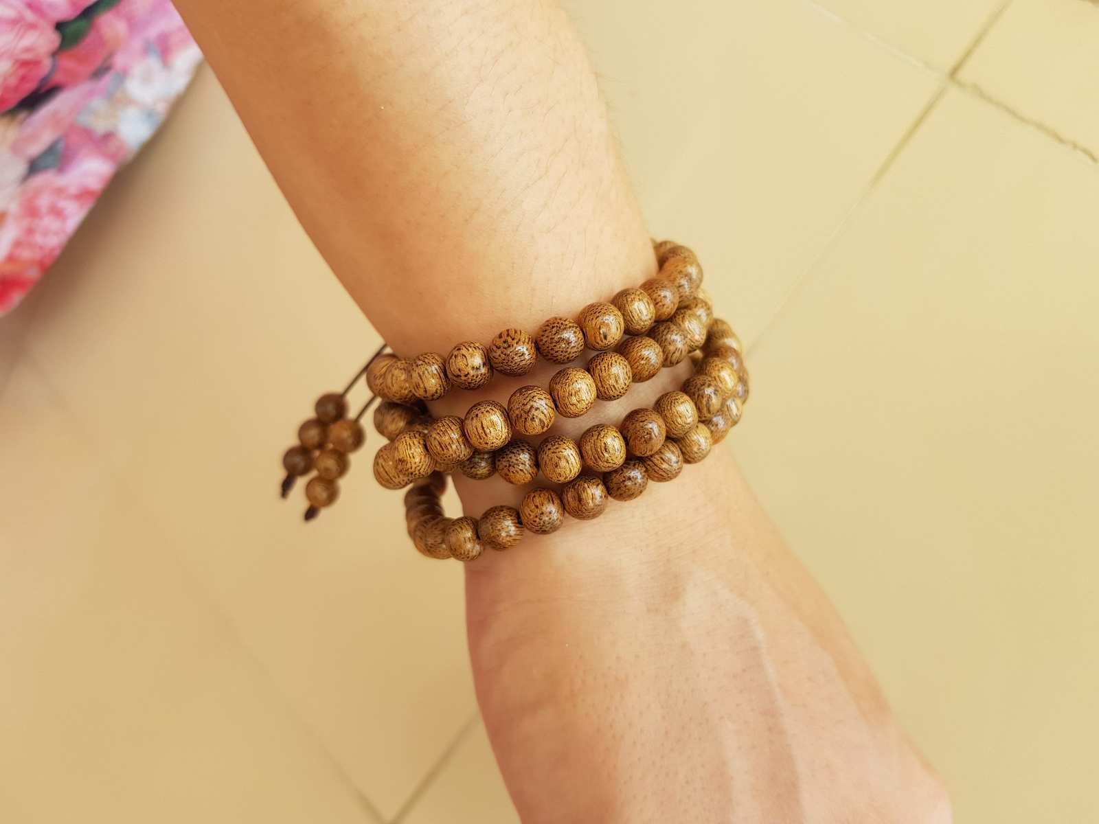 - Natural Agarwood Bracelet 108 Beads – Toc Lao Scented 6/7/8mm Meditation Beads