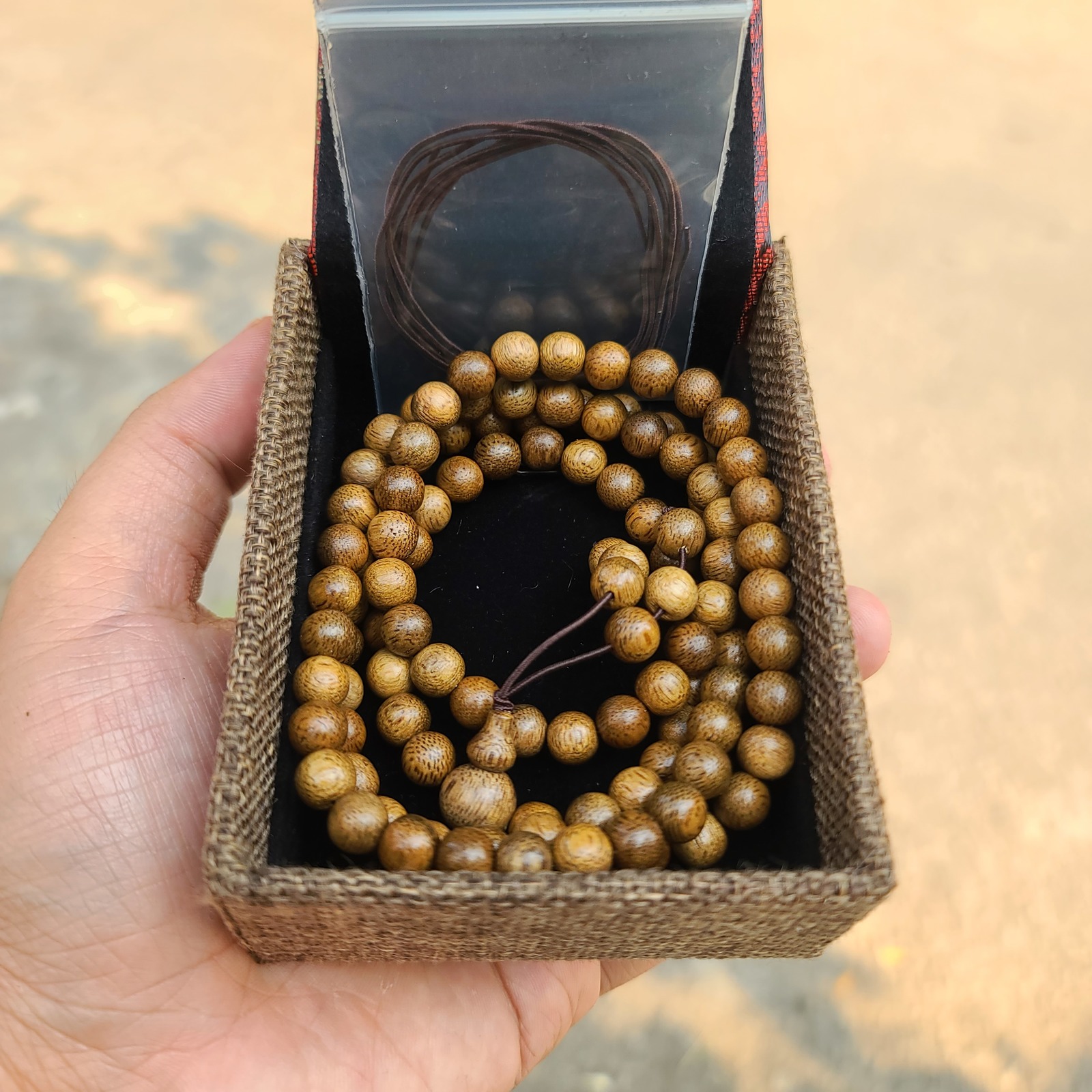 Elevate your spiritual practice or daily wear with this Natural Agarwood Bracelet – 108 beads, crafted from high-quality sunken agarwood aged over 15 years. Known for its rich, long-lasting scent and spiritual significance, this bracelet combines tradition, elegance, and meaning.