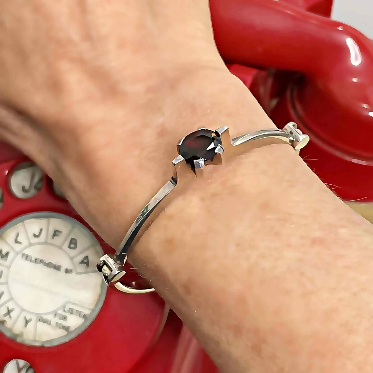 This lovely and very classic garnet bangle is set with a natural garnet which is very dark and give red fiery flashes from time to time.