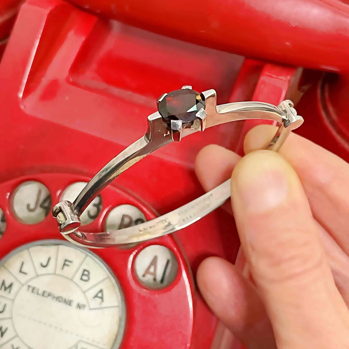 A handmade artisan faceted RED UNTREATED NATURAL pyrope garnet minimalist sterling silver bangle