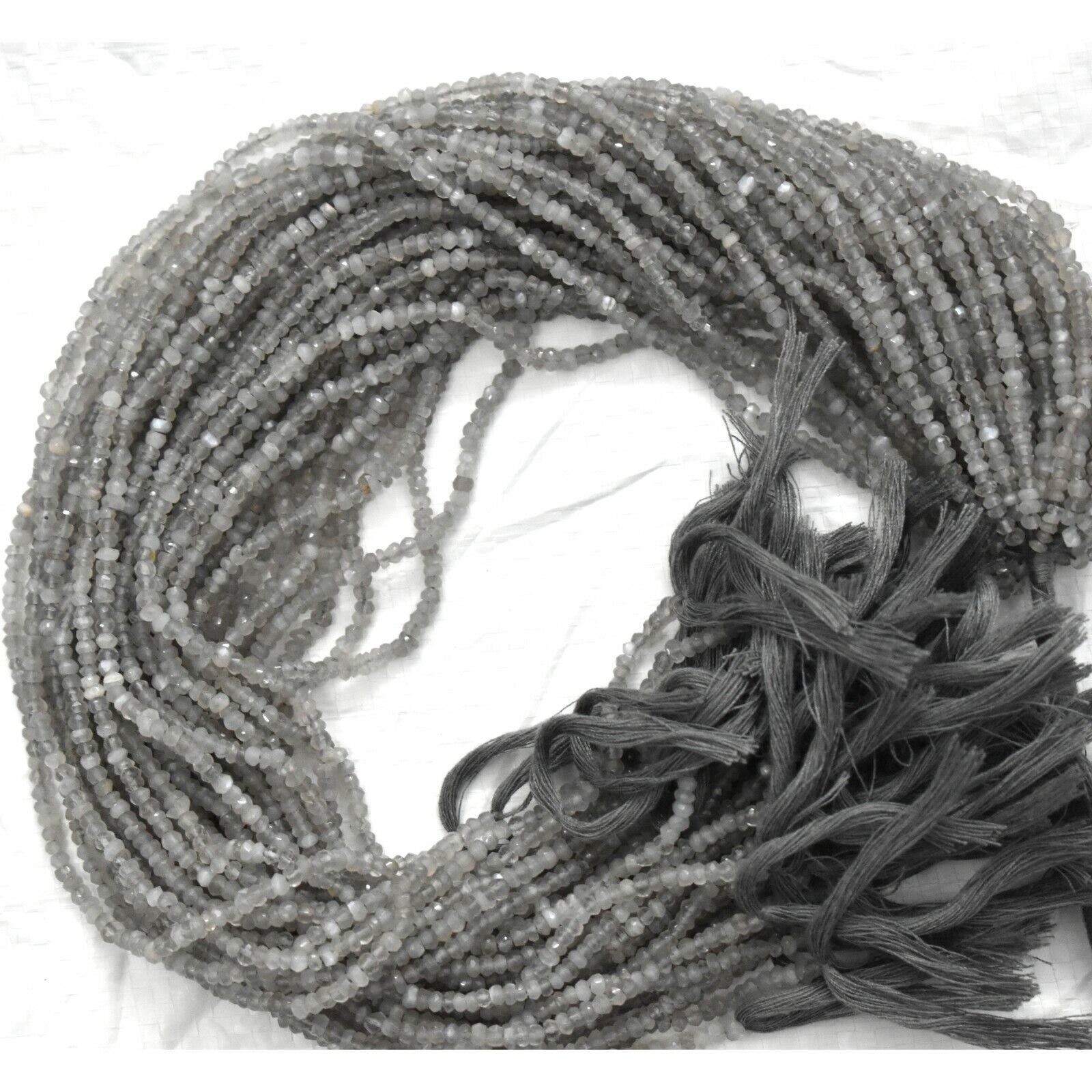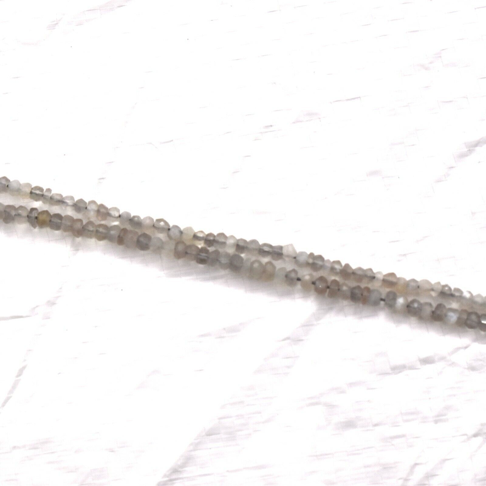 - Natural Gray Moonstone 3-3.5mm Faceted Round Gemstone Beads 13" Strand BDS-1110