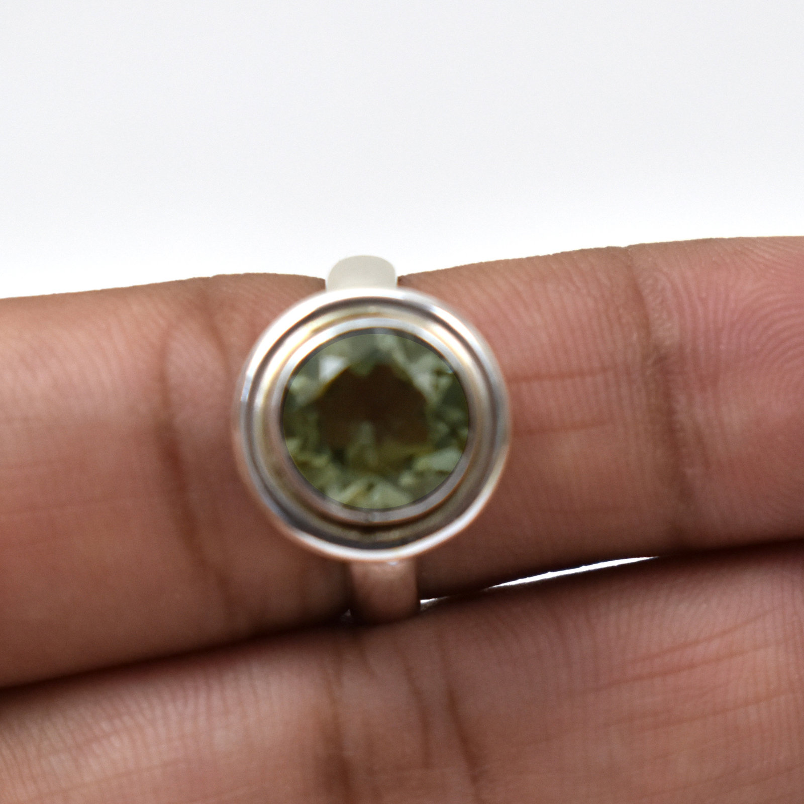 Natural Green Amethyst Ring-925 Sterling Silver-Statement Ring-Simple Ring