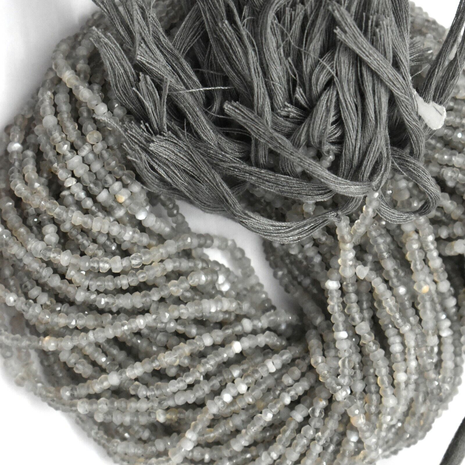 - Natural Gris Piedra Luna 3.5-4mm Facetado Redondo Preciosa Suelto Cuentas 13"