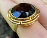 A dazzling natural smoky quartz gold plated silver ring, circa 1970.