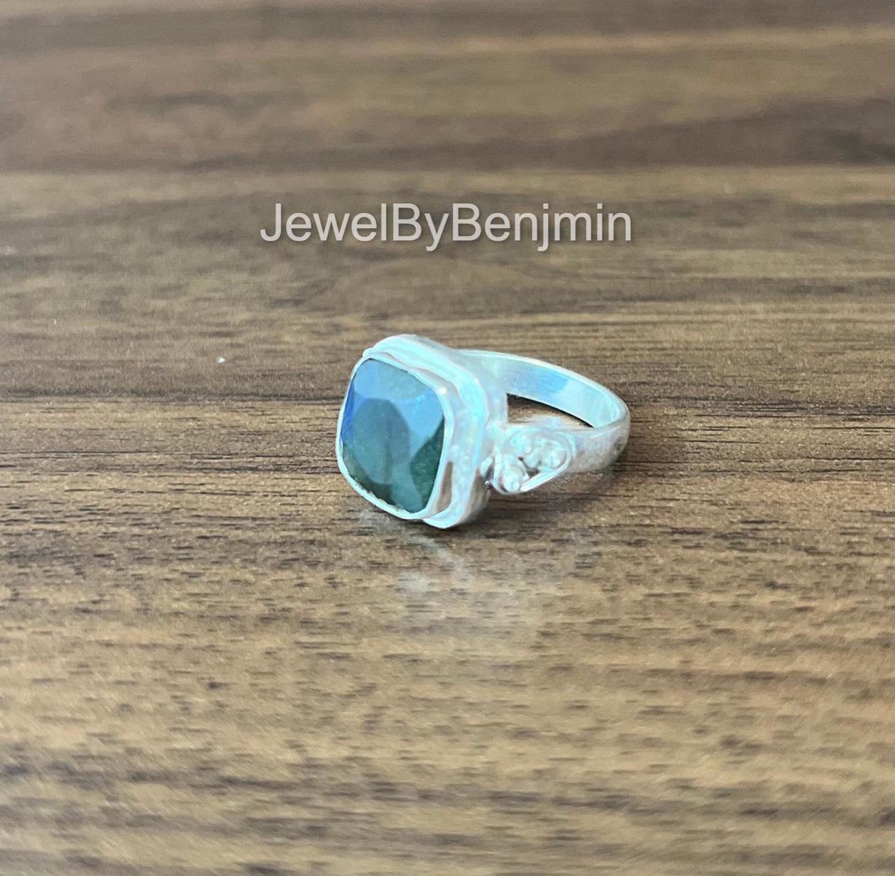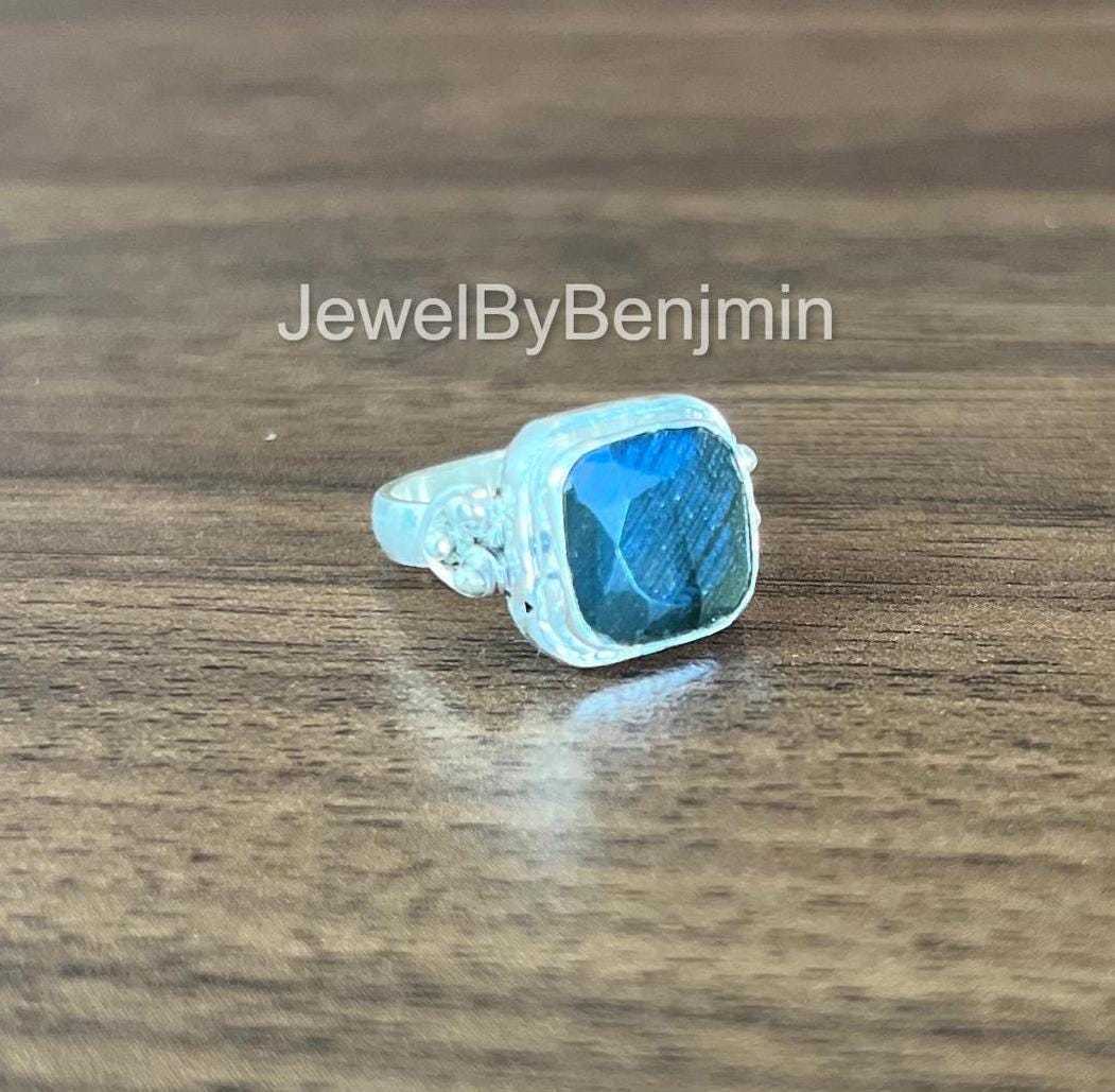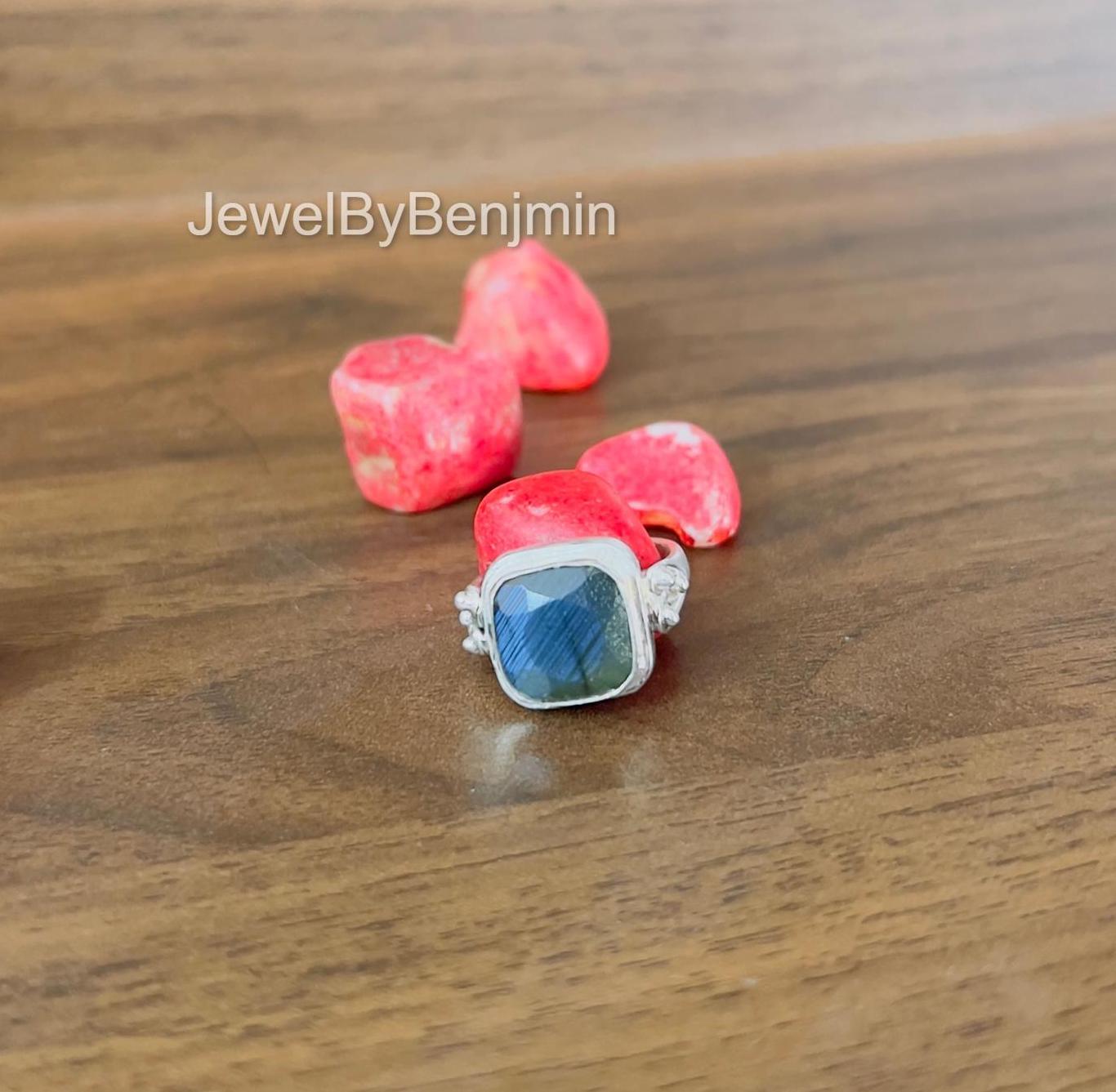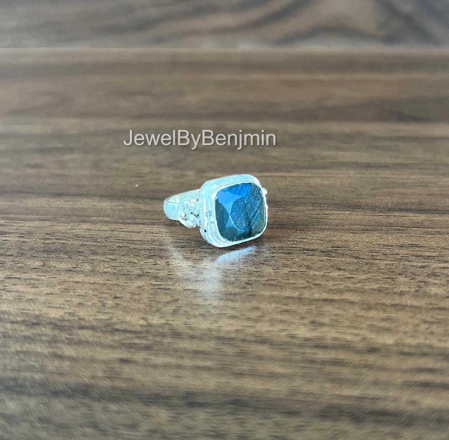 - Natural Labradorite Ring 925 Sterling Silver Ring, Faceted Gemstone Ring , Cushi