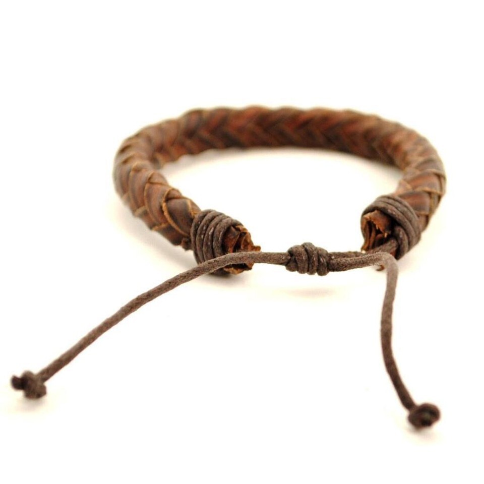 - NATURAL LEATHER BRACELET Brown Cord Braid Men Women Braided Adjustable Surfer