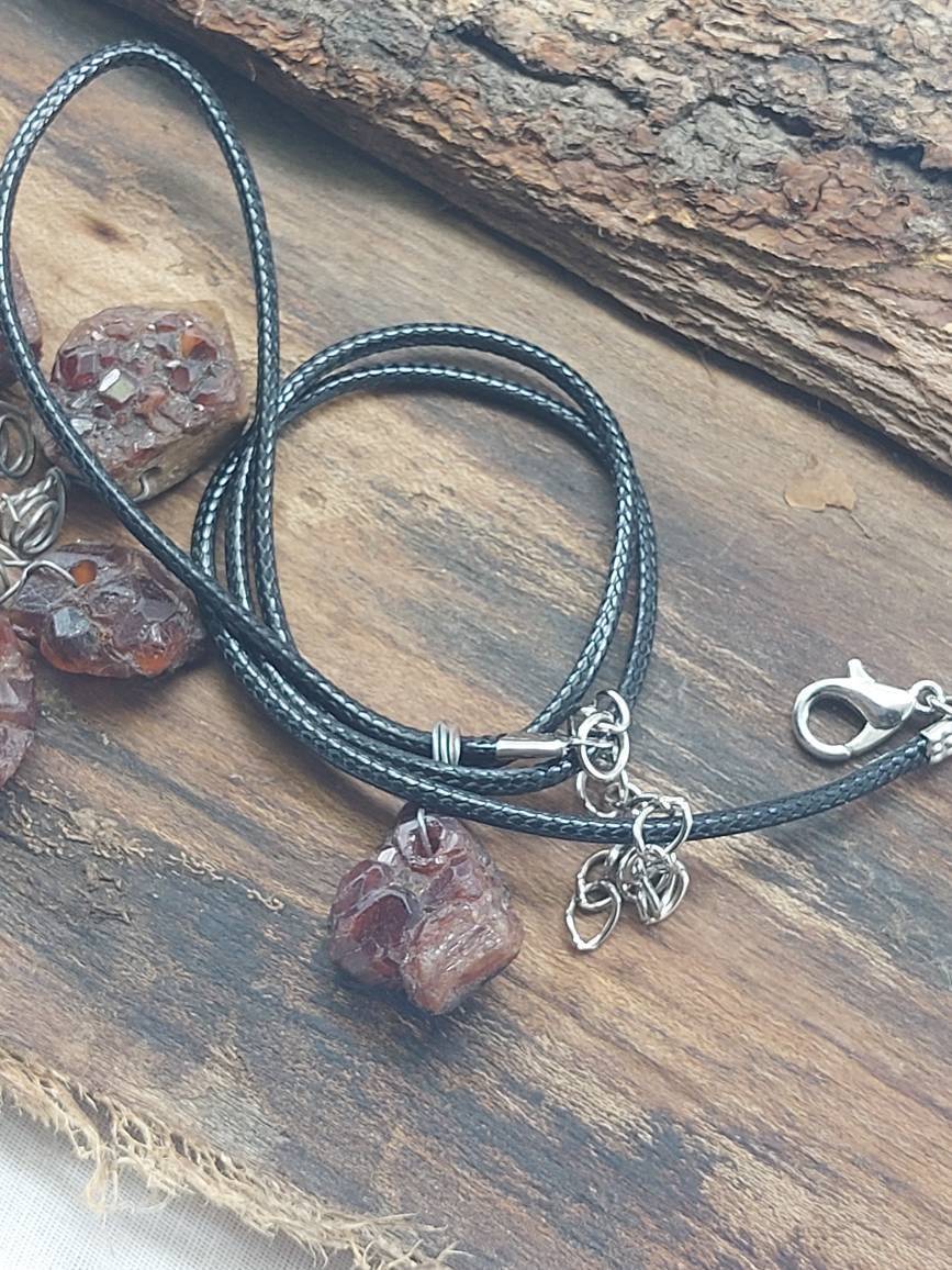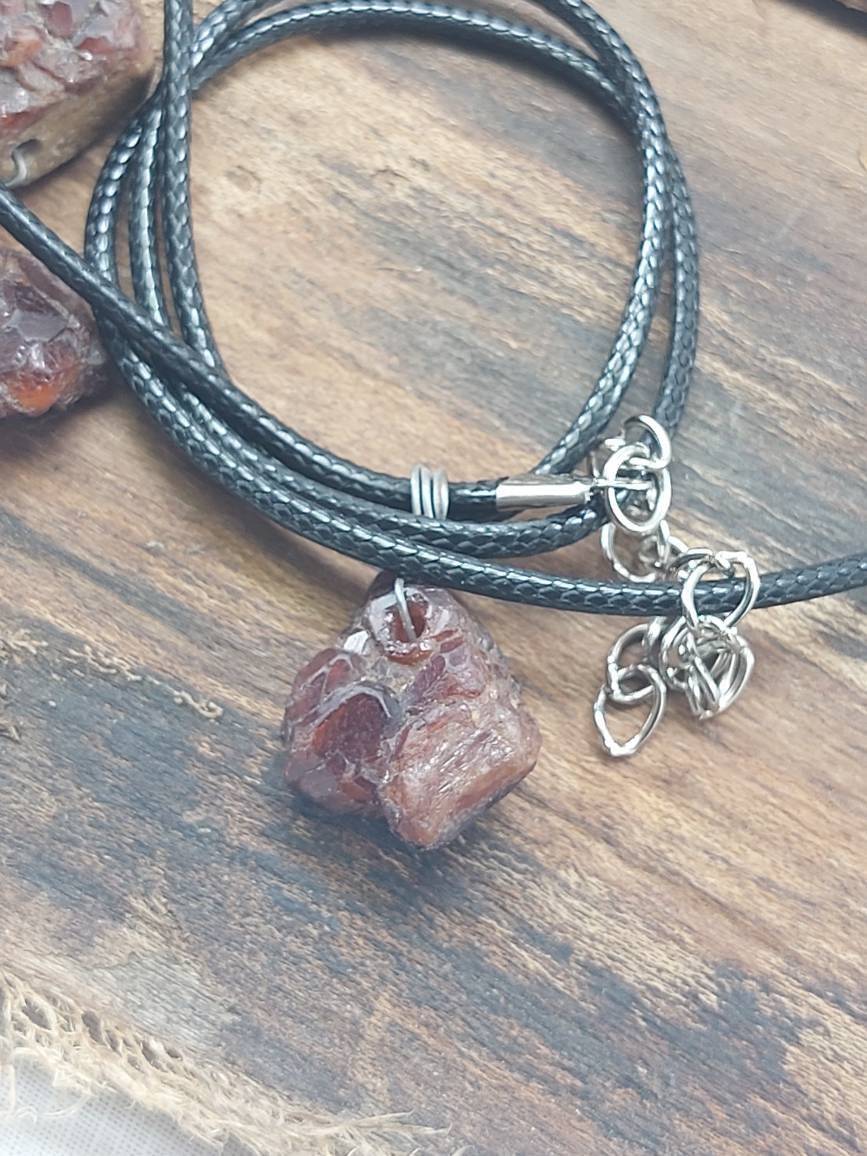 Natural Raw Garnet free farm Pendant with leather Chain January birthstone