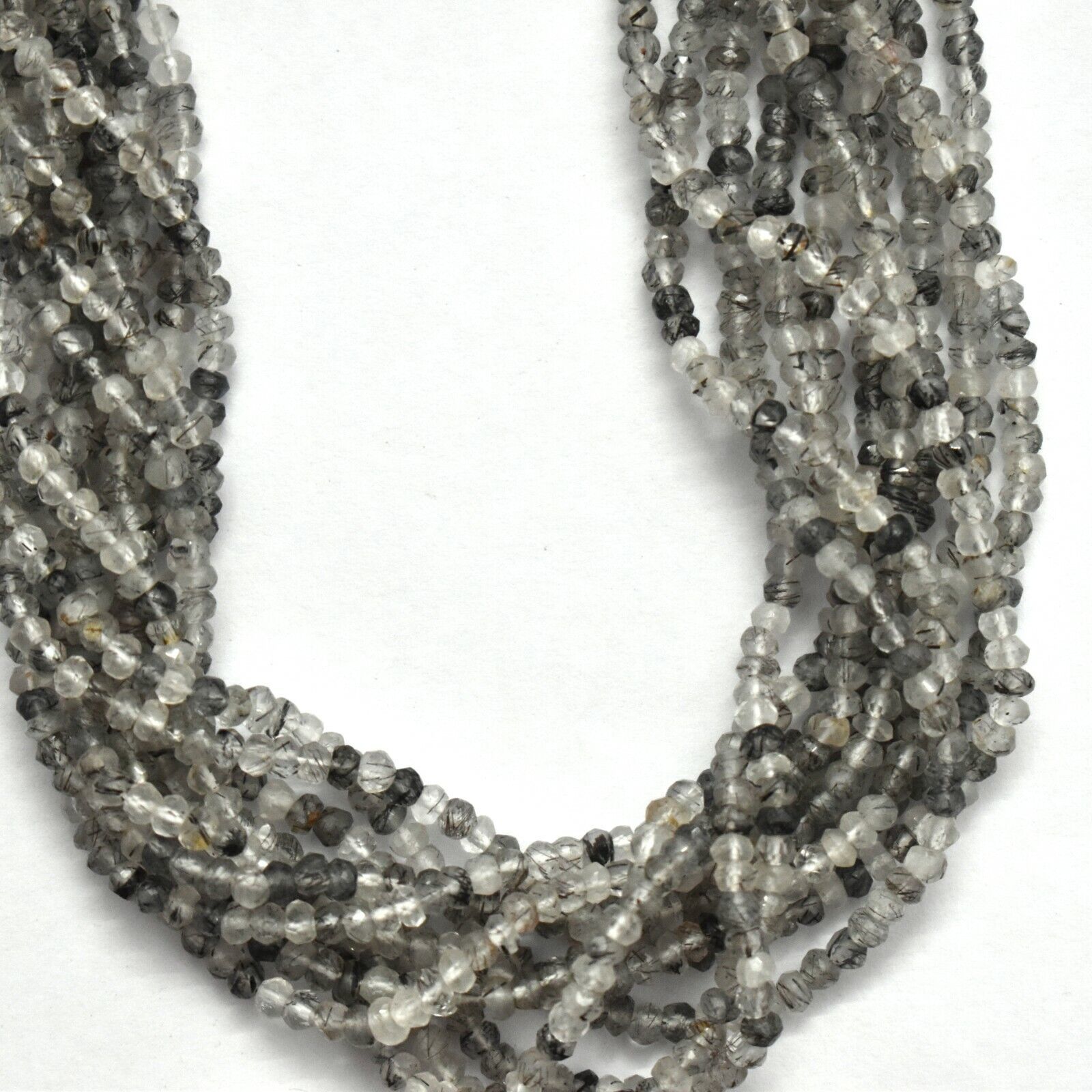 Natural Rutile Quartz 3.5-4mm Faceted Round Beads Size 13" Strand BDS-1055