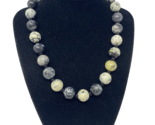 - Natural Stone Beaded Necklace Black, Ivory, Grey 18"