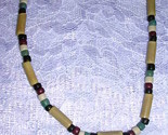 - NATURAL TAN BAMBOO LOOK TUBE BEADS & ASSORTED COLOR WOODEN COCO BEAD NECKLACE