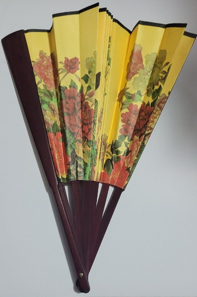 - Natural Wood Extra Large Lace Floral Folding Hand Held 19 Inches Chinese Fan