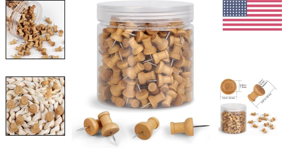 - Natural Wood Push Pins - 240 Decorative Thumb Tacks for Cork Boards & Crafts