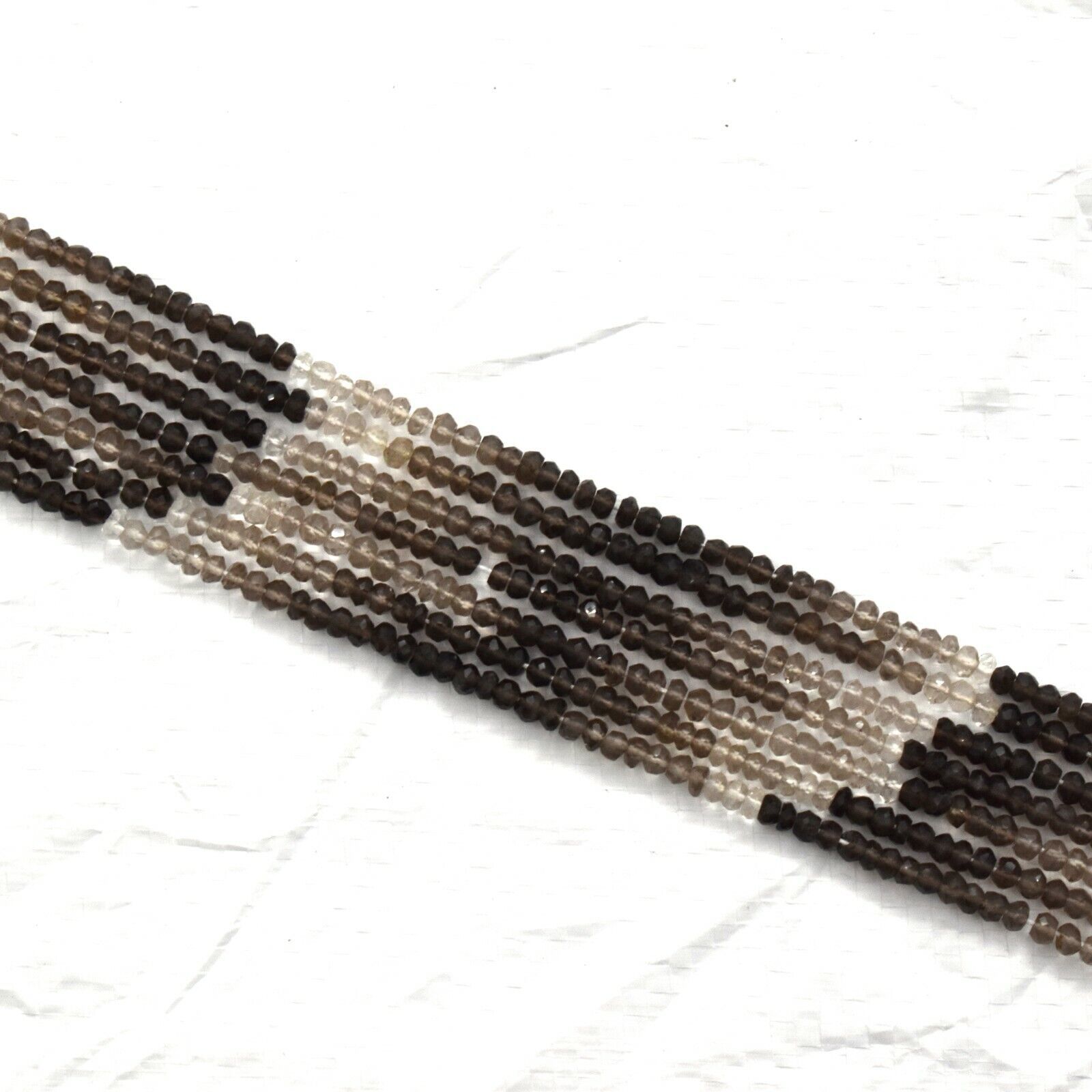 Naturale Fumoso Quarzo 3-3.5mm Sfaccettato Rotondo Gemma Perle 13 " Filo