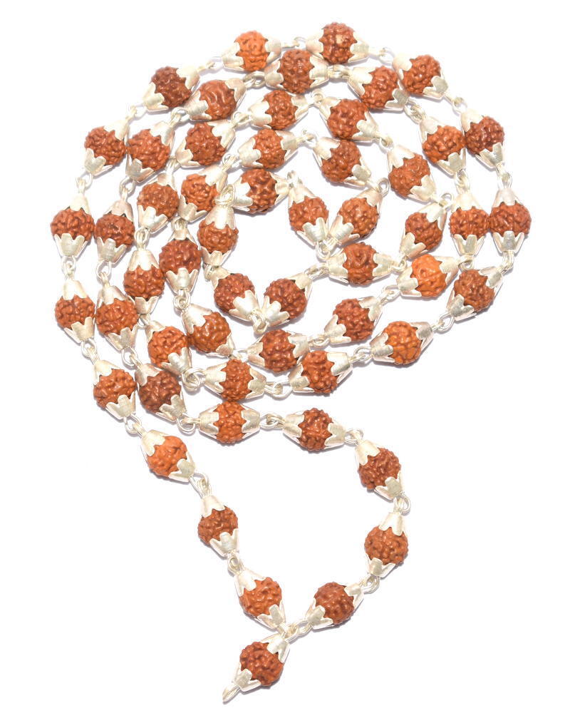 - Naturale Rudraksha Mala IN Puro Argento Conica Coperchi - 54+1