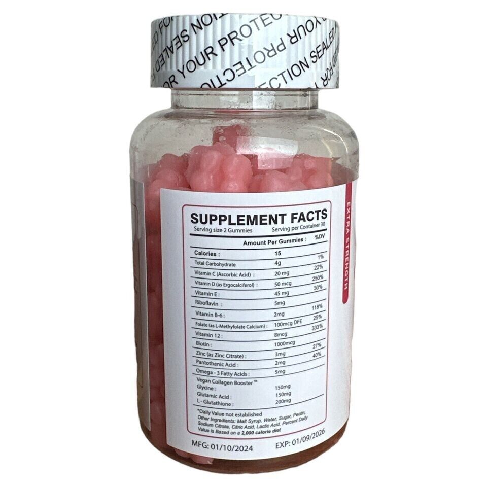 Nature Glow's GLUTATHIONE Collagen Gummies Glow are formulated with marine collagen and essential vitamins to provide multiple benefits. These gummies are designed to enhance skin brightening, giving you a radiant complexion. They also contribute to the health of your hair, nails, and bones, promoting overall wellness.