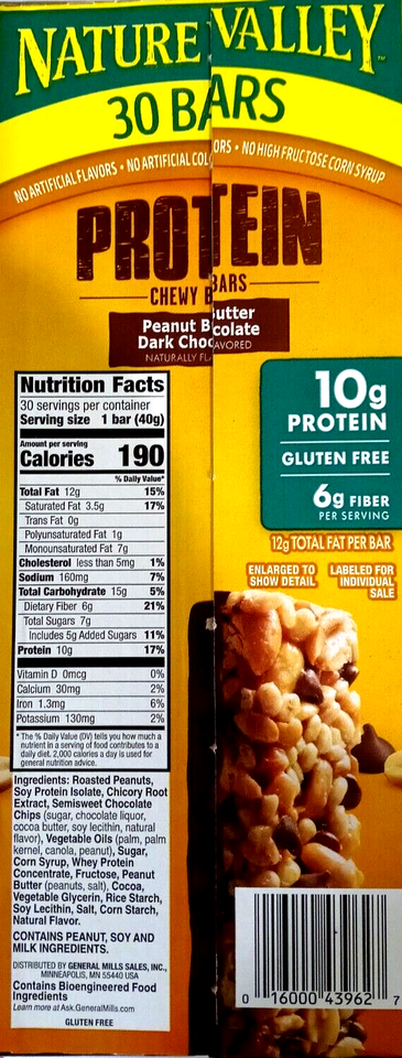 - Nature Valley Protein Chewy Bars Peanut Butter Dark Chocolate 30 Ct EXP 01/2026