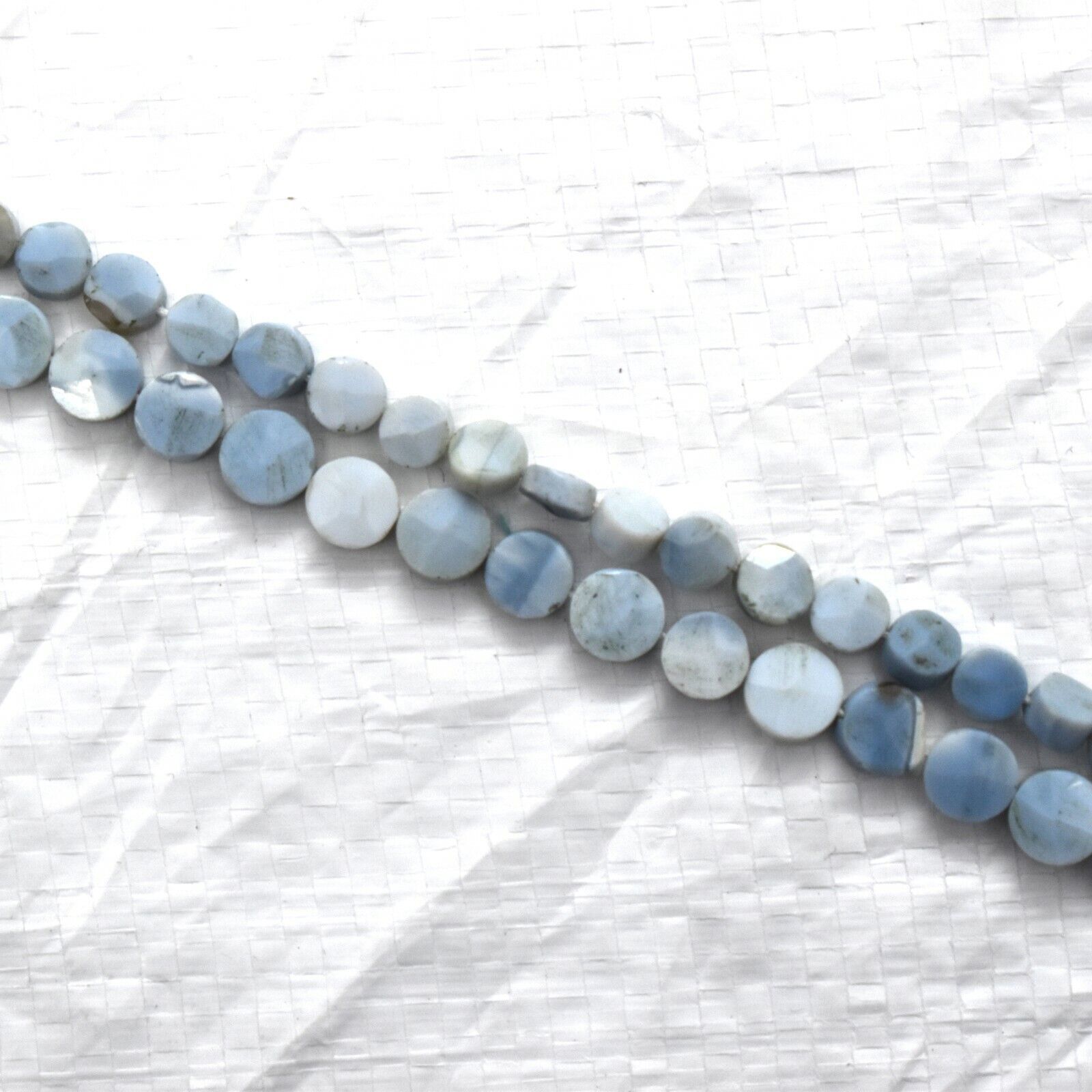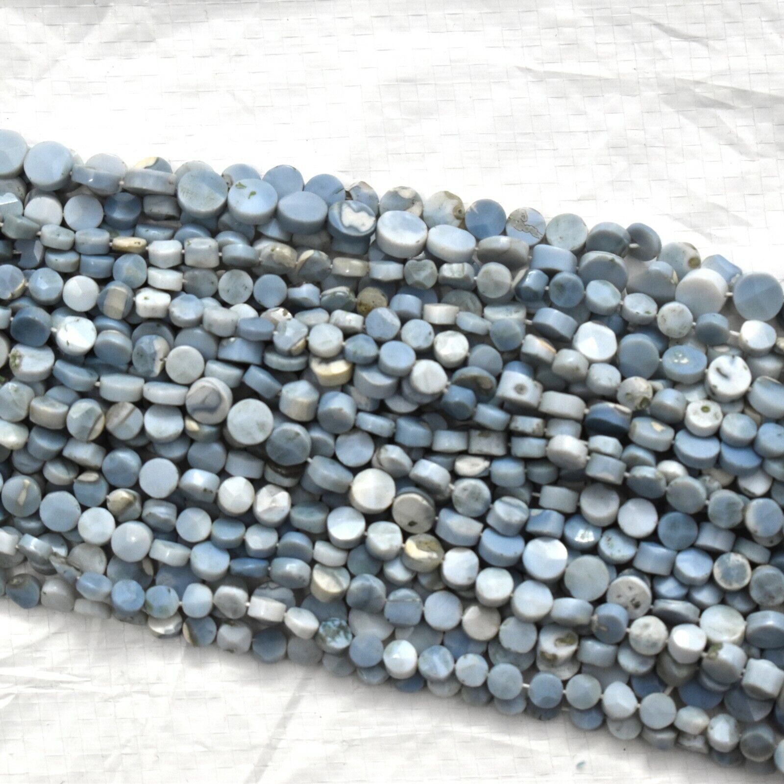 Forme de la pierre precieuse : perles a facettes en forme de piece de monnaie Couleur des pierres precieuses : BleuTaille des pierres precieuses : 5-6 mm
