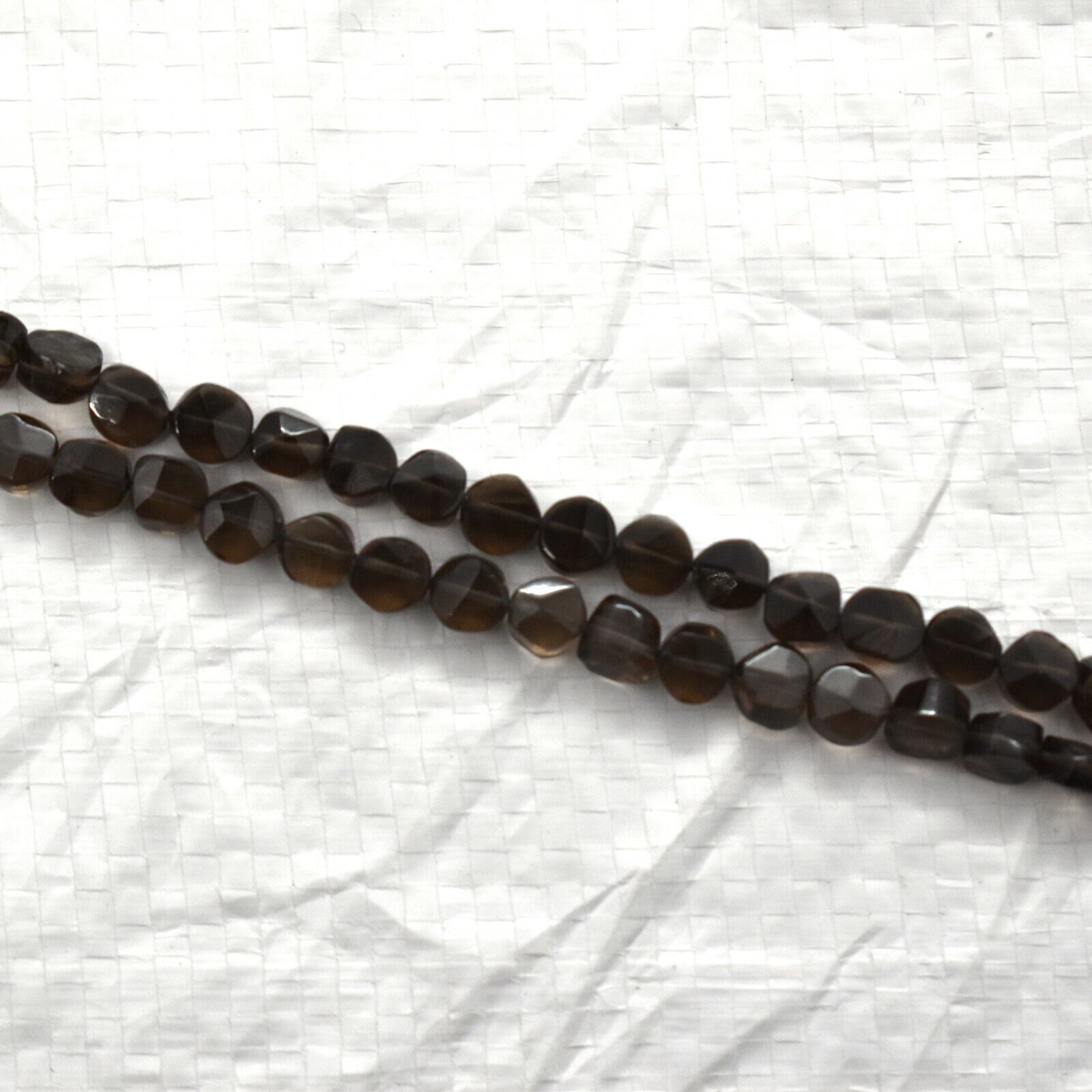 Forme de la pierre precieuse : perles a facettes en forme de piece de monnaie Couleur de la gemme : MarronTaille des pierres precieuses : 5-6 mm